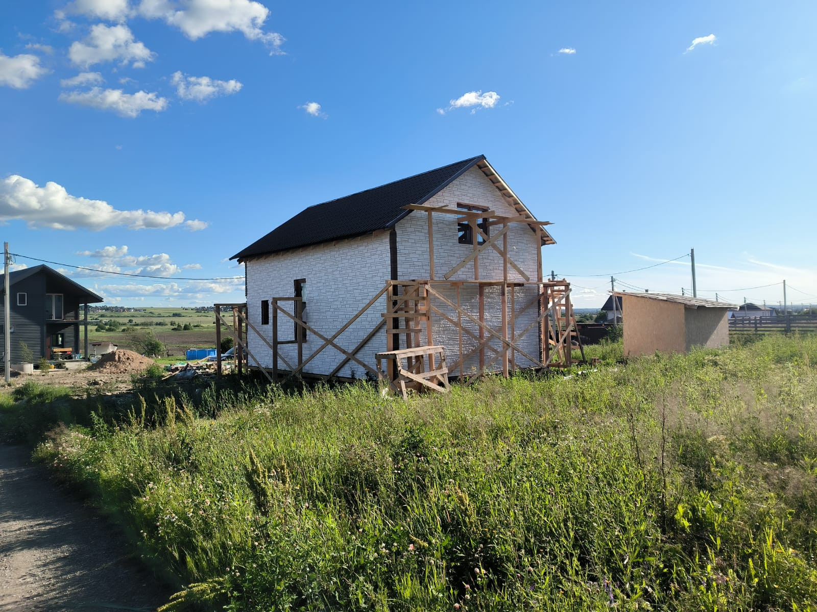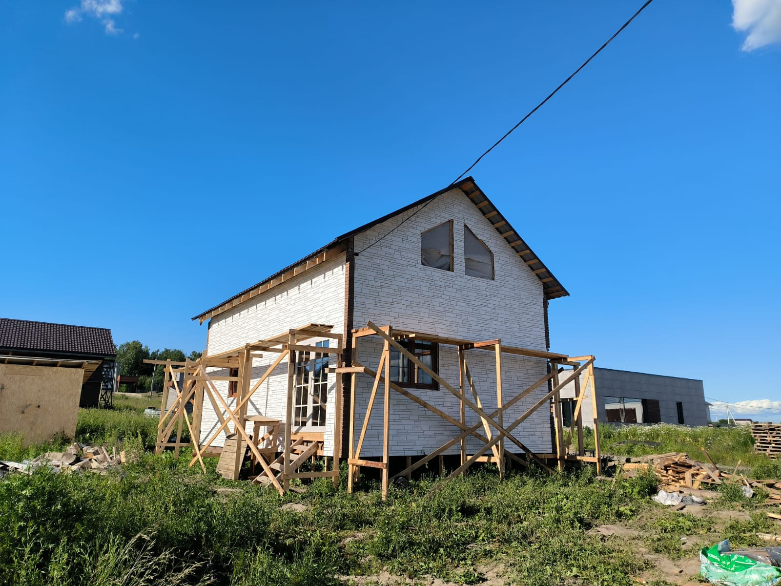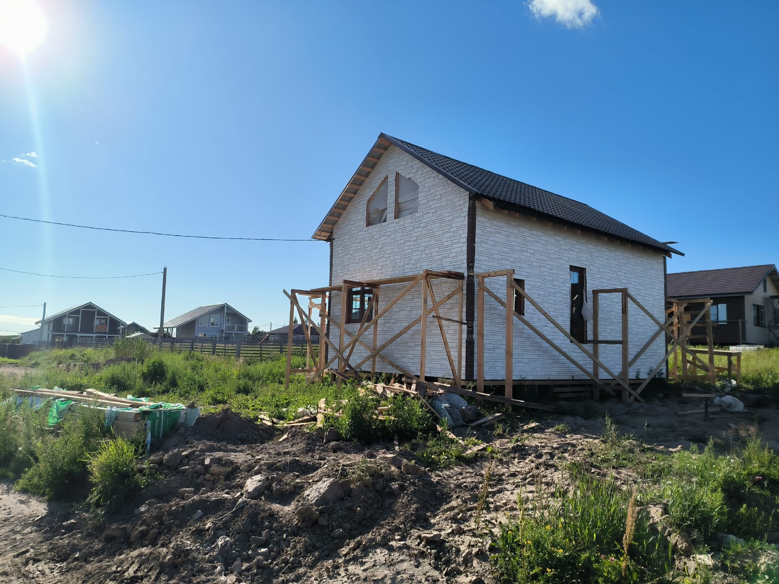 Дом утеплен. Снраужи общит сайдингом.