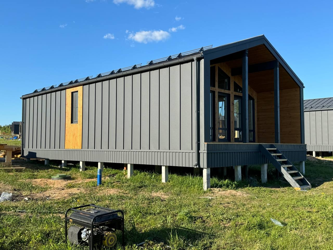 Дом оборудован электрическим отоплением, теплым полом по всей площади и бойлером Electrolux с интеллектуальной системой управления. Фундамент выполнен из железобетонных свай, а стены и полы утеплены.