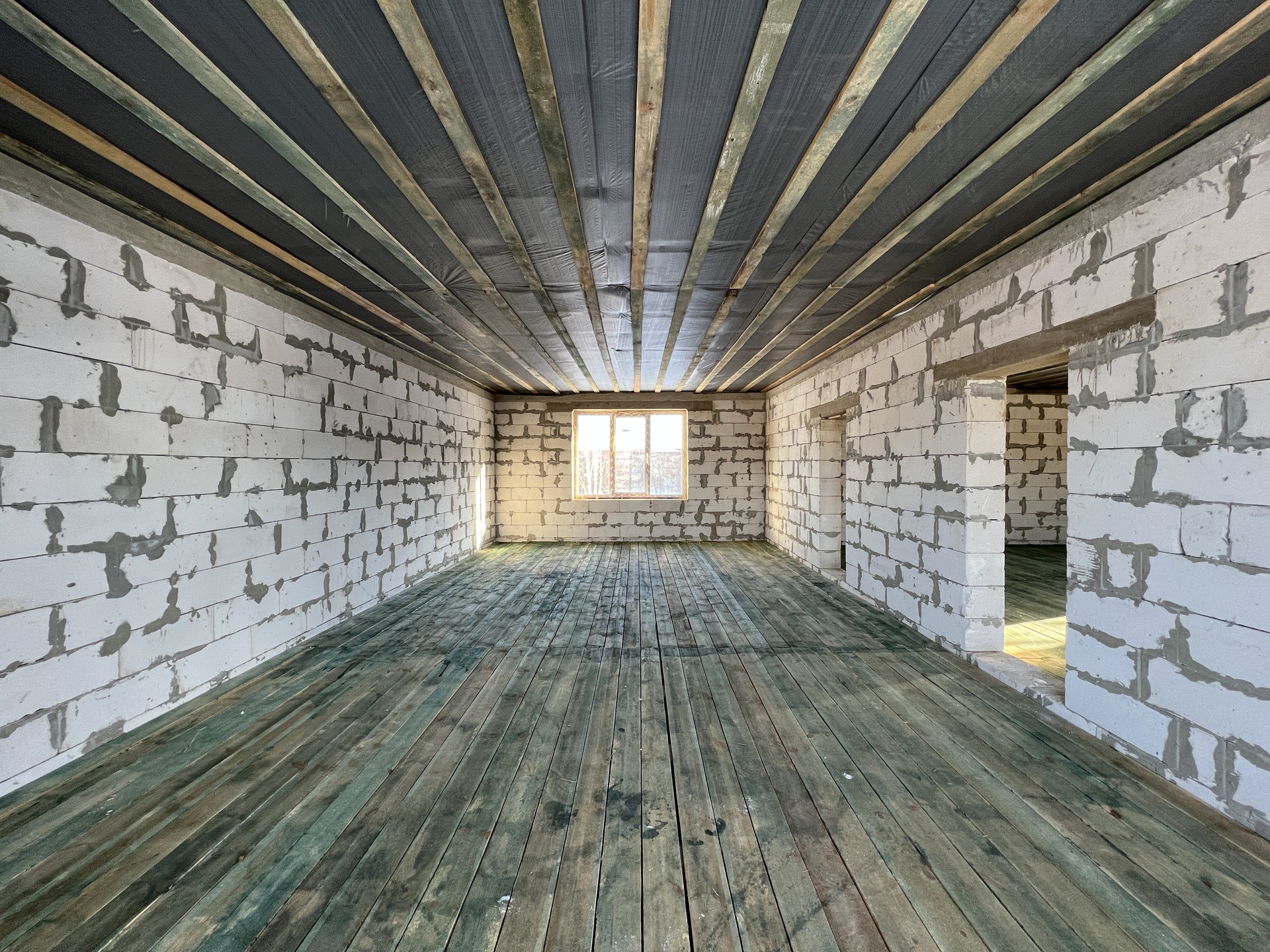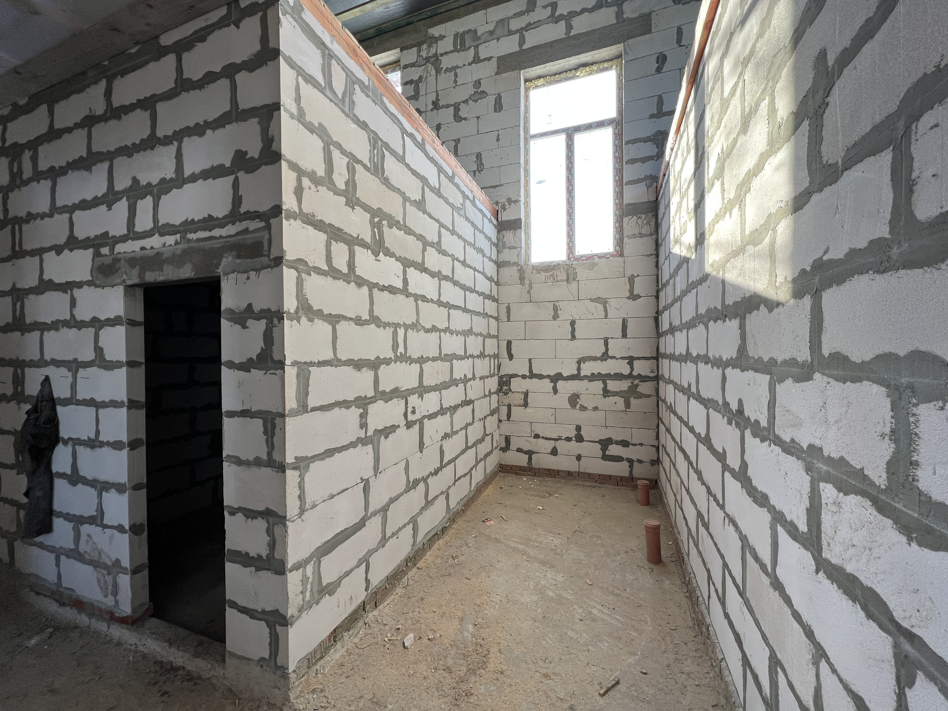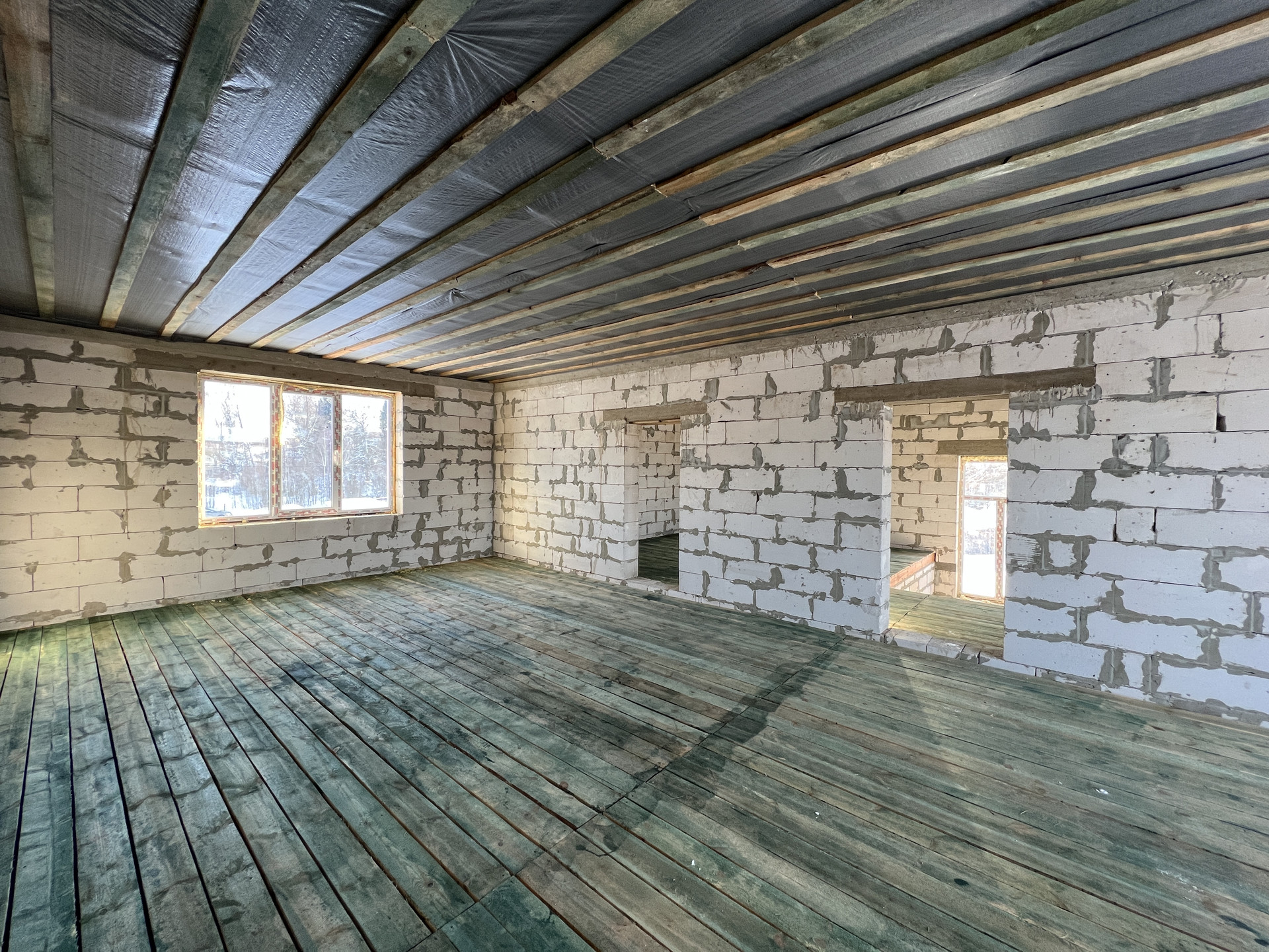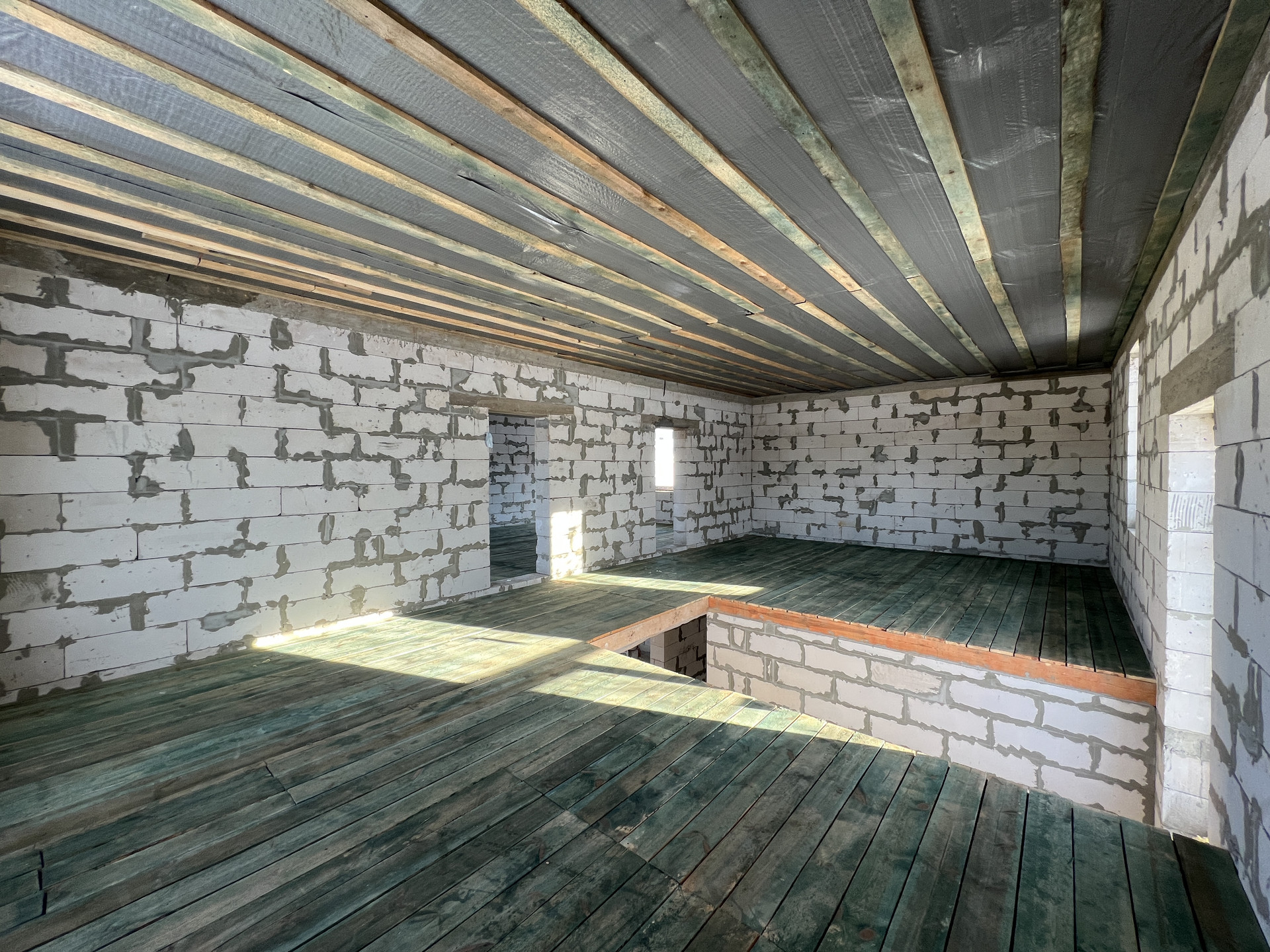 2 этаж: Два пространства с перегородкой из блока. Можно спланировать помещение второго этажа под себя.