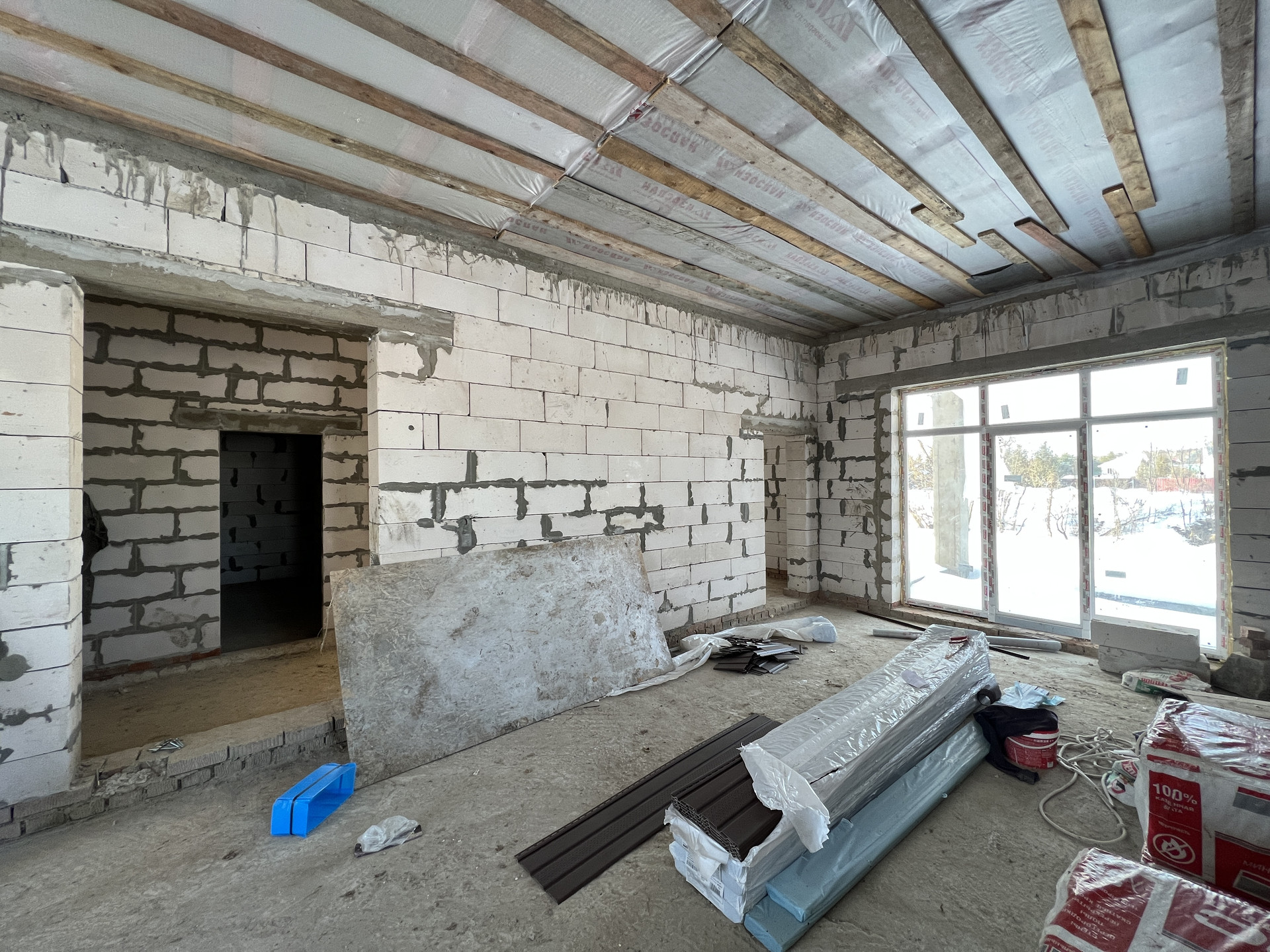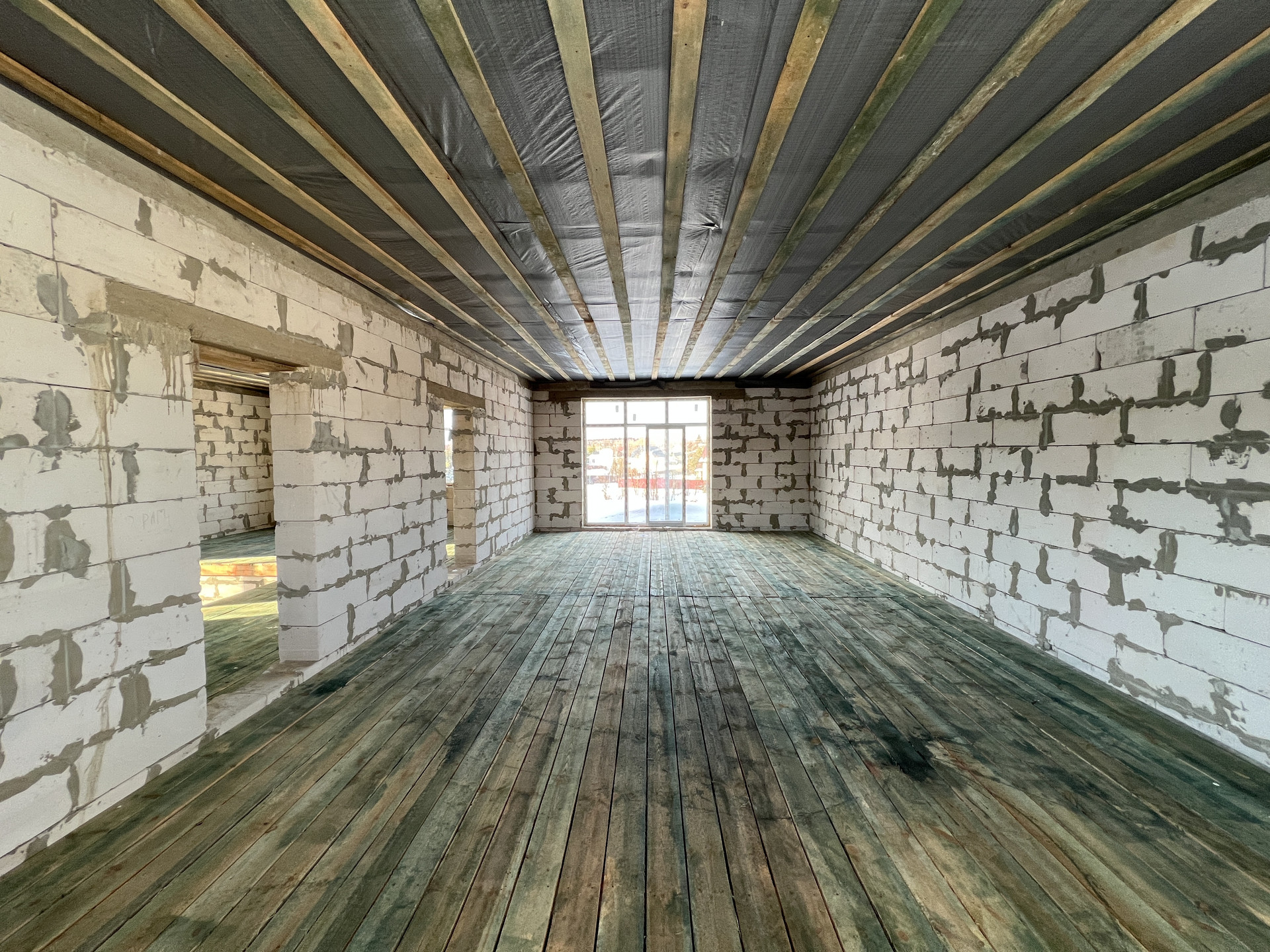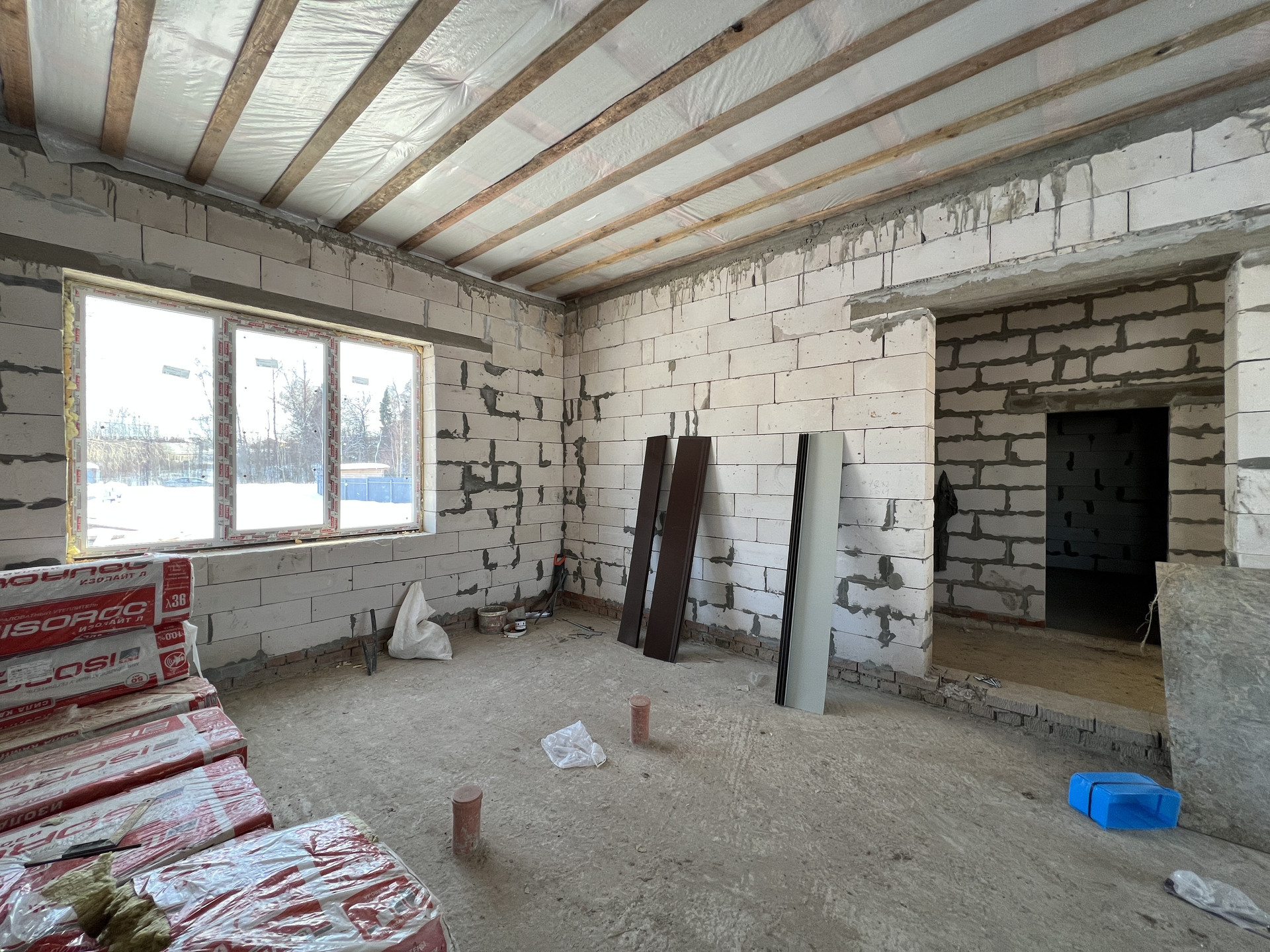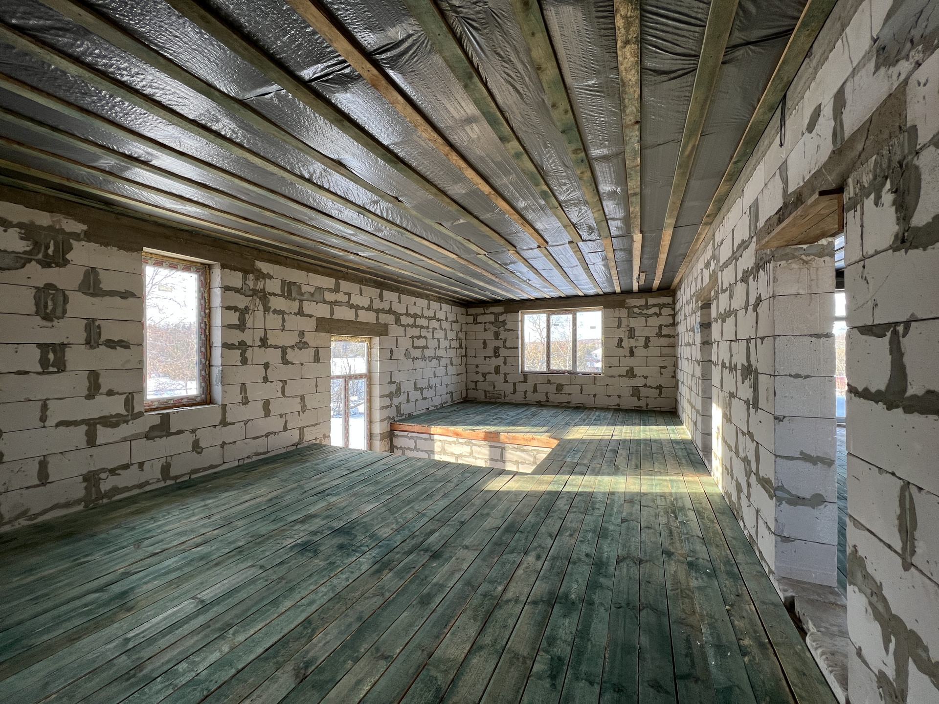 2 этаж: Два пространства с перегородкой из блока. Можно спланировать помещение второго этажа под себя.