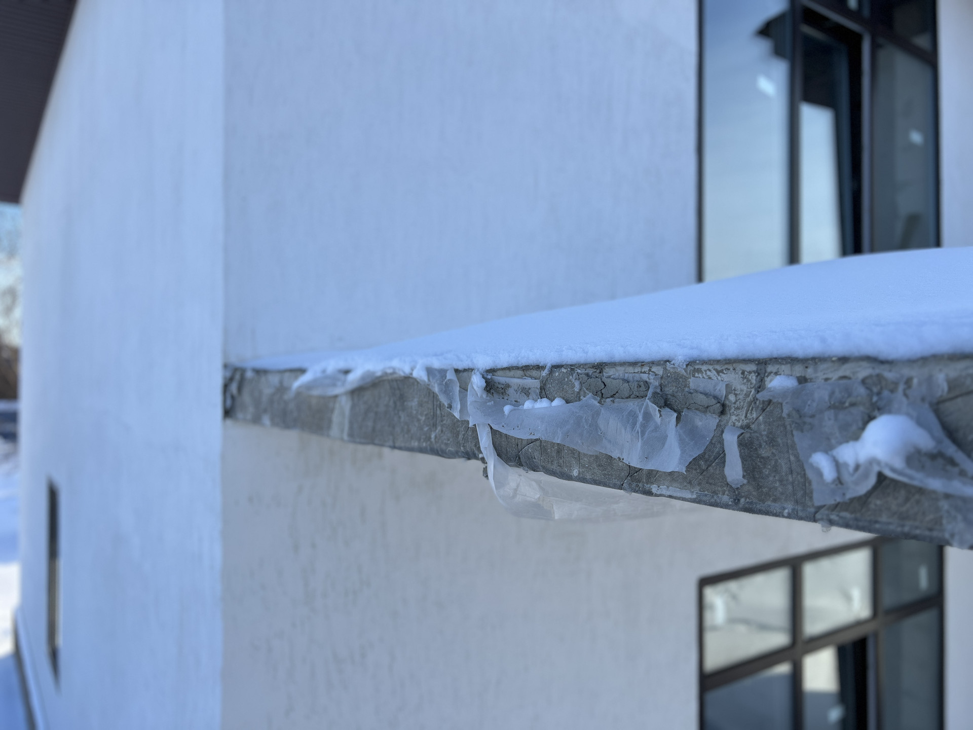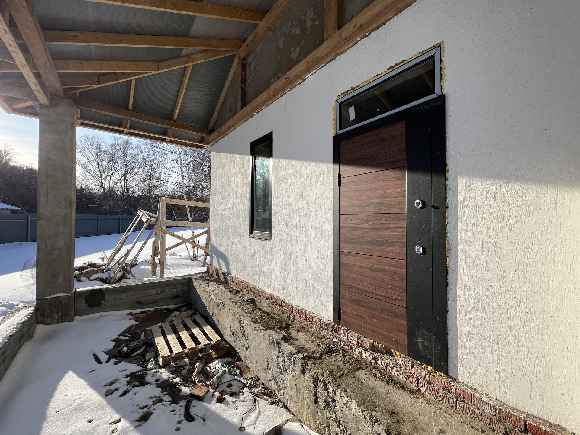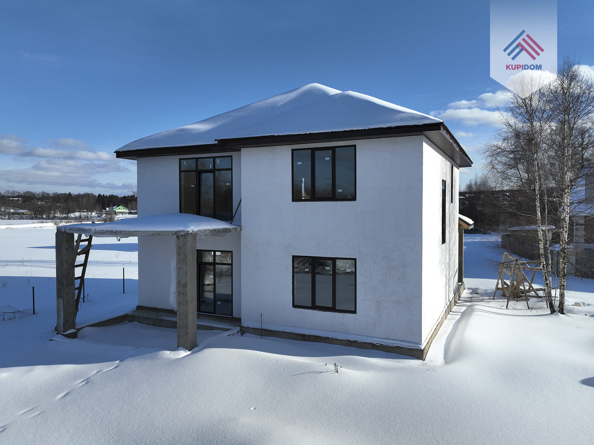 Фундамент - ж/б плита с нижним ростверком; Материал дома газоблок "Калужский газобетон" 625х325 D500 + утепление Пеноплекс 5; Внутренние перегородки - газоблок; Внешняя отделка - штукатурка Короед; Монолитная терраса второго этажа и столбы (клинкерный кирпич для с столбов в наличии); Крыша - мягкая кровля c утеплением 200мм ROCKWOLL; Межэтажные перекрытия - деревянные лаги 150х200 с утеплением 200мм ROCKWOLL; Водосточная система; Окна - двухкамерные пластиковые стеклопакеты, установлены раздвижные двери с выходом на террасу первого и второго этажа.