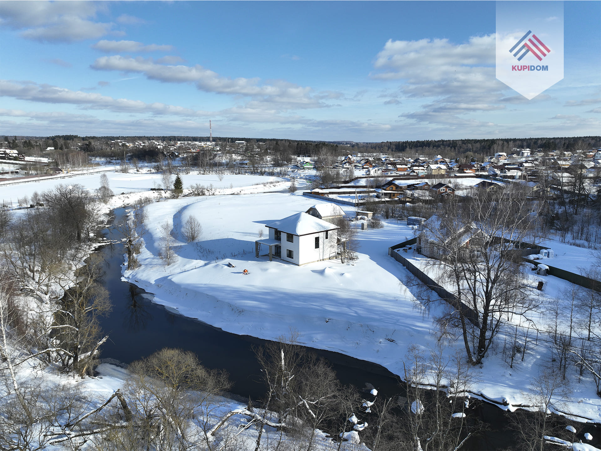 В продаже каменный дом, расположенный на территории коттеджного поселка "Истьинская Ривьера" на берегу реки Истья.