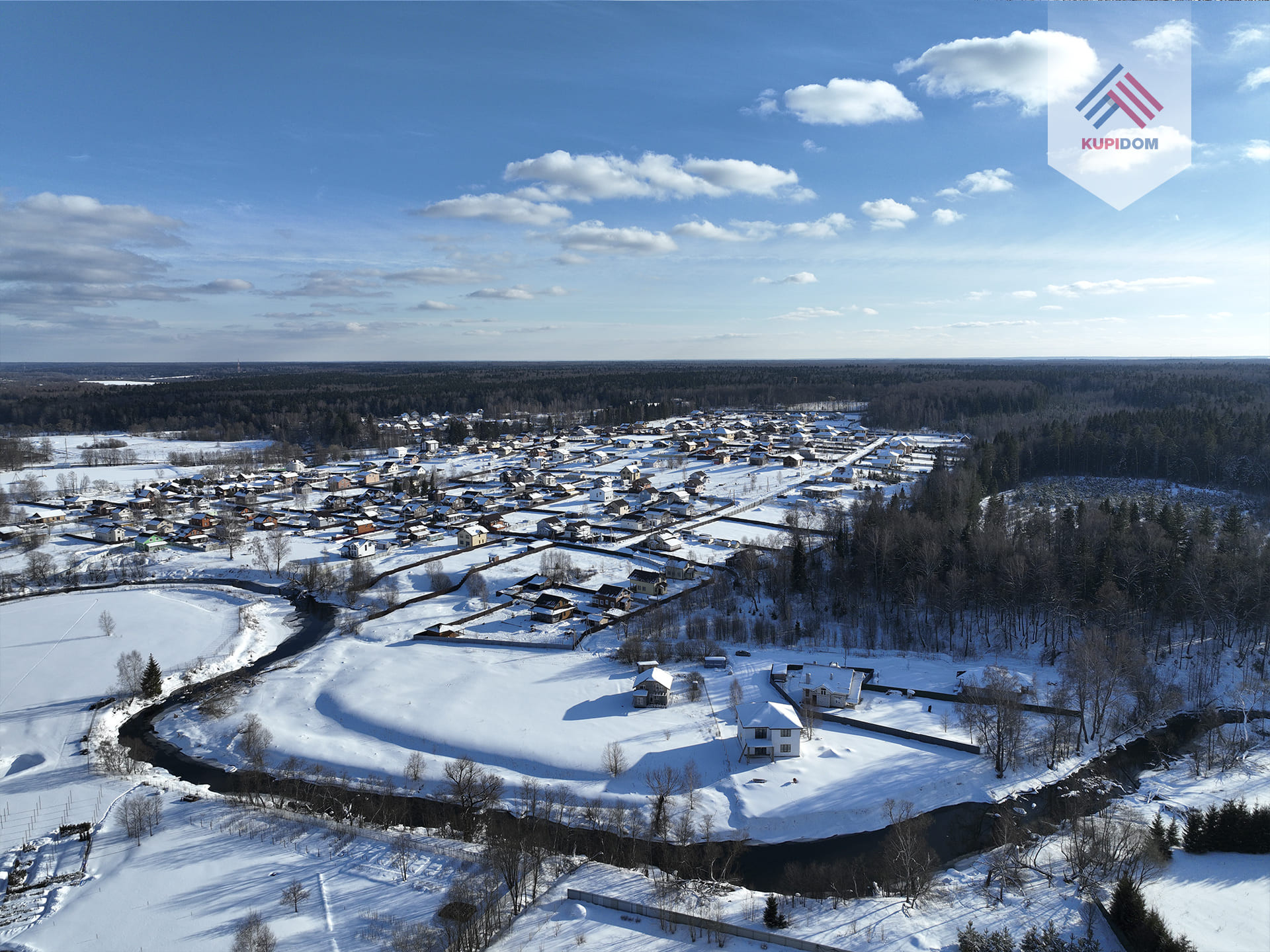 Поселок огорожен высоким забором. Установлен шлагбаум на въезд. Соседи почти все построились и живут круглогодично.