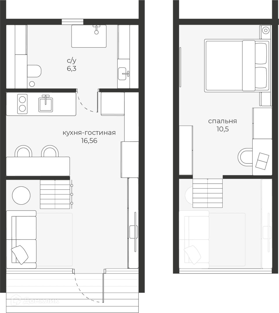одна спальня на втором этаже;