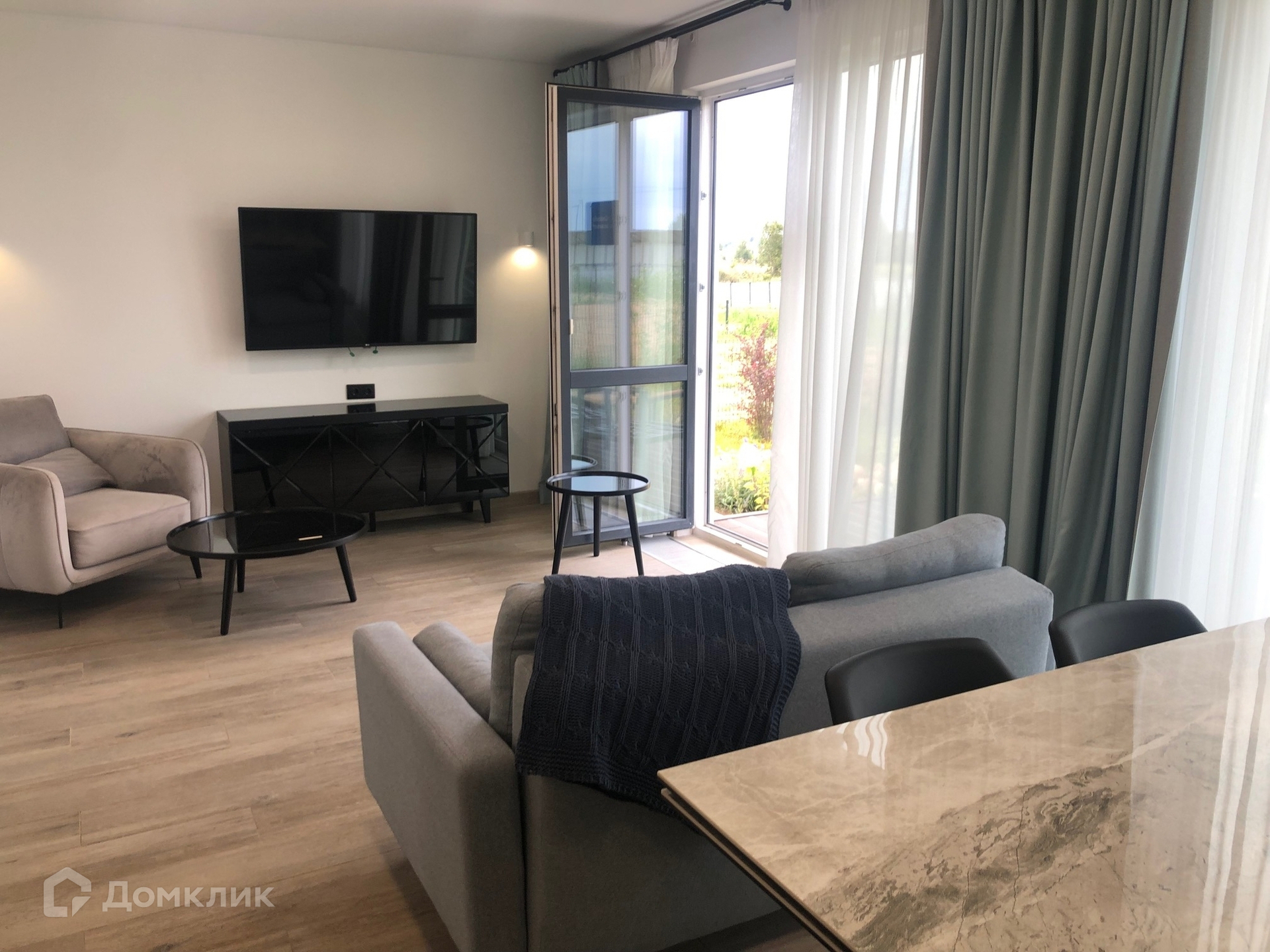 Просторная кухня-гостиная, 3 комнаты, санузел.
