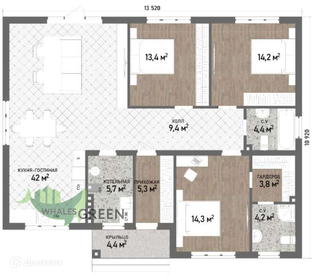 Общая площадь 121 м2