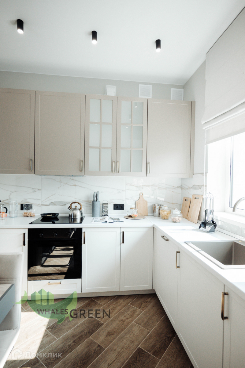 Отличная планировка, правильное разделение общей и приватной зоны позволит скрыть спальные комнаты от взглядов гостей. Три спальни,  одна из которых мастер спальня, из двух спален и гостинной выход на террасу 25 кв.м. Просторная кухня-гостинная с панорамными окнами добавляет уюта и много света. Внешний забор в едином стиле, широкие дороги, тротуар и площадка под два автомобиля вымощена брусчаткой. Охрана, видеонаблюдение, гарантия на дом от застройщика на 8 лет!