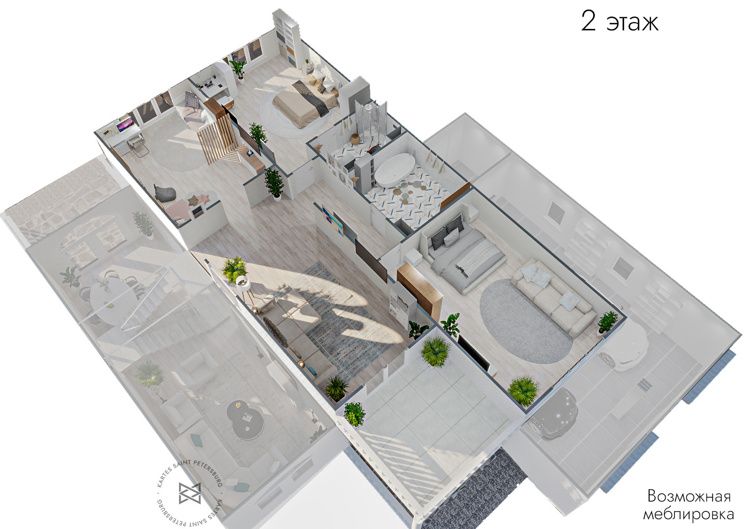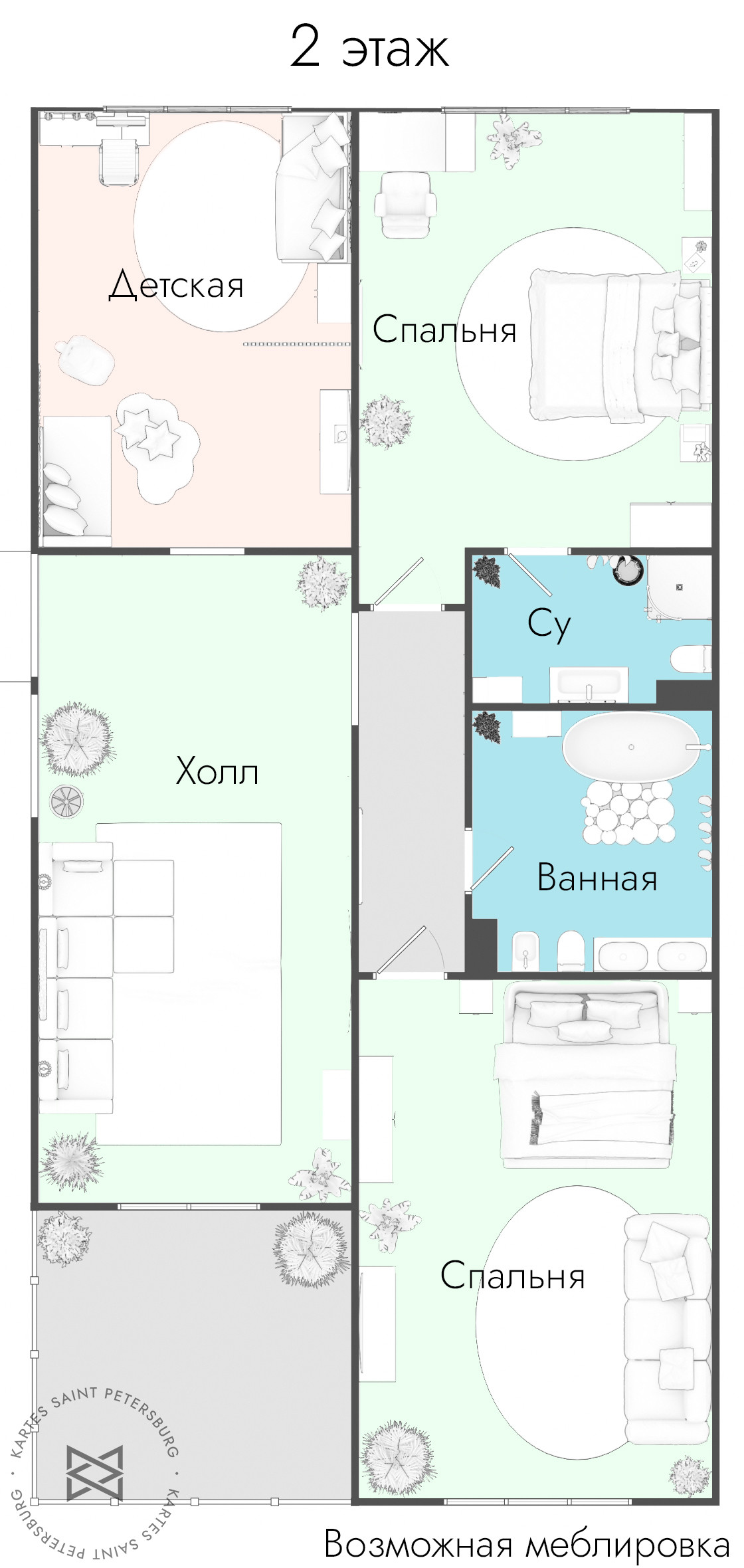 ✅Просторная планировка со светлыми спальнями, просторной кухней-гостиной и несколькими санузлами;
