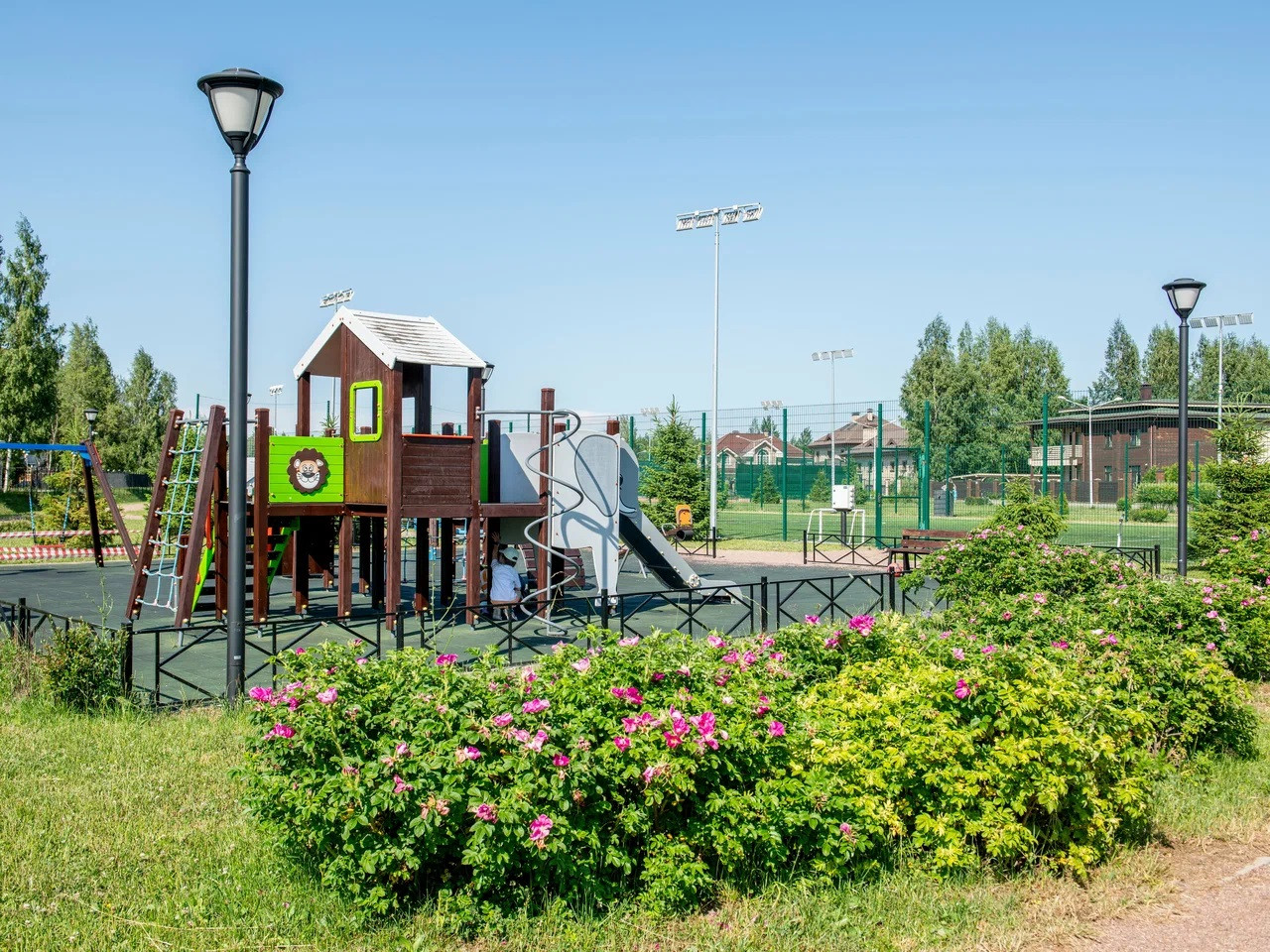 Дом расположен прямо у парковой и спортивной зоны.