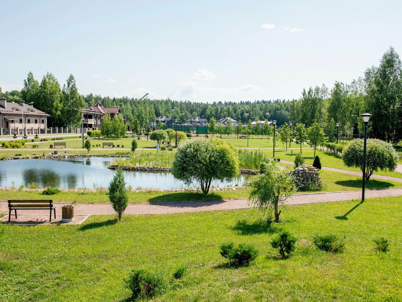 В рамках единой архитектурной концепции разработан проект регулярного частного парка, который занимает 2 Га земли между территориями первой и второй очередей поселка.