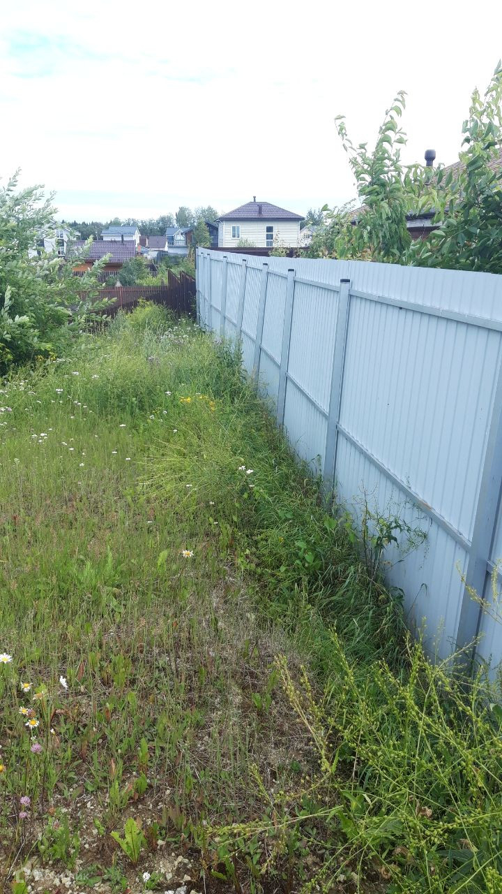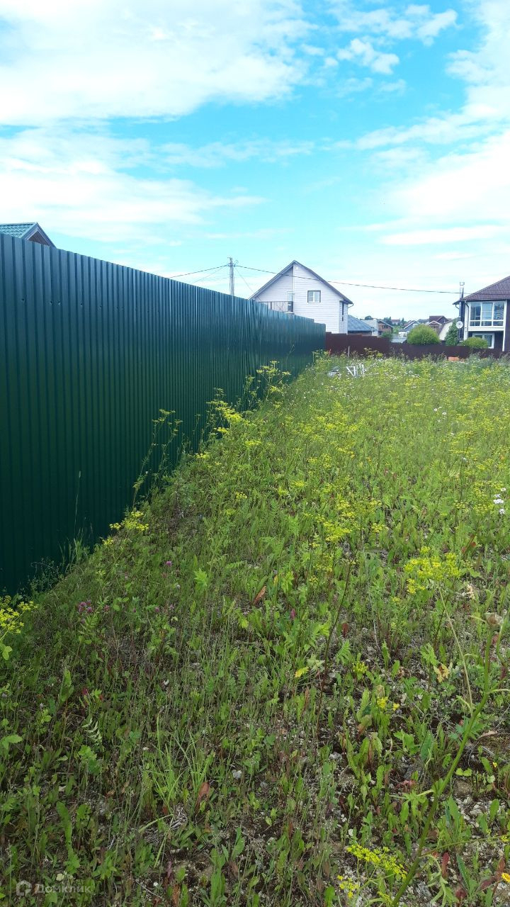 12 соток, прямоугольной формы, произведено межевание. Огорожен забором из металлического профиля. Широкие дороги из асфальтовой крошки прямо до участка, зимой дороги чистят.