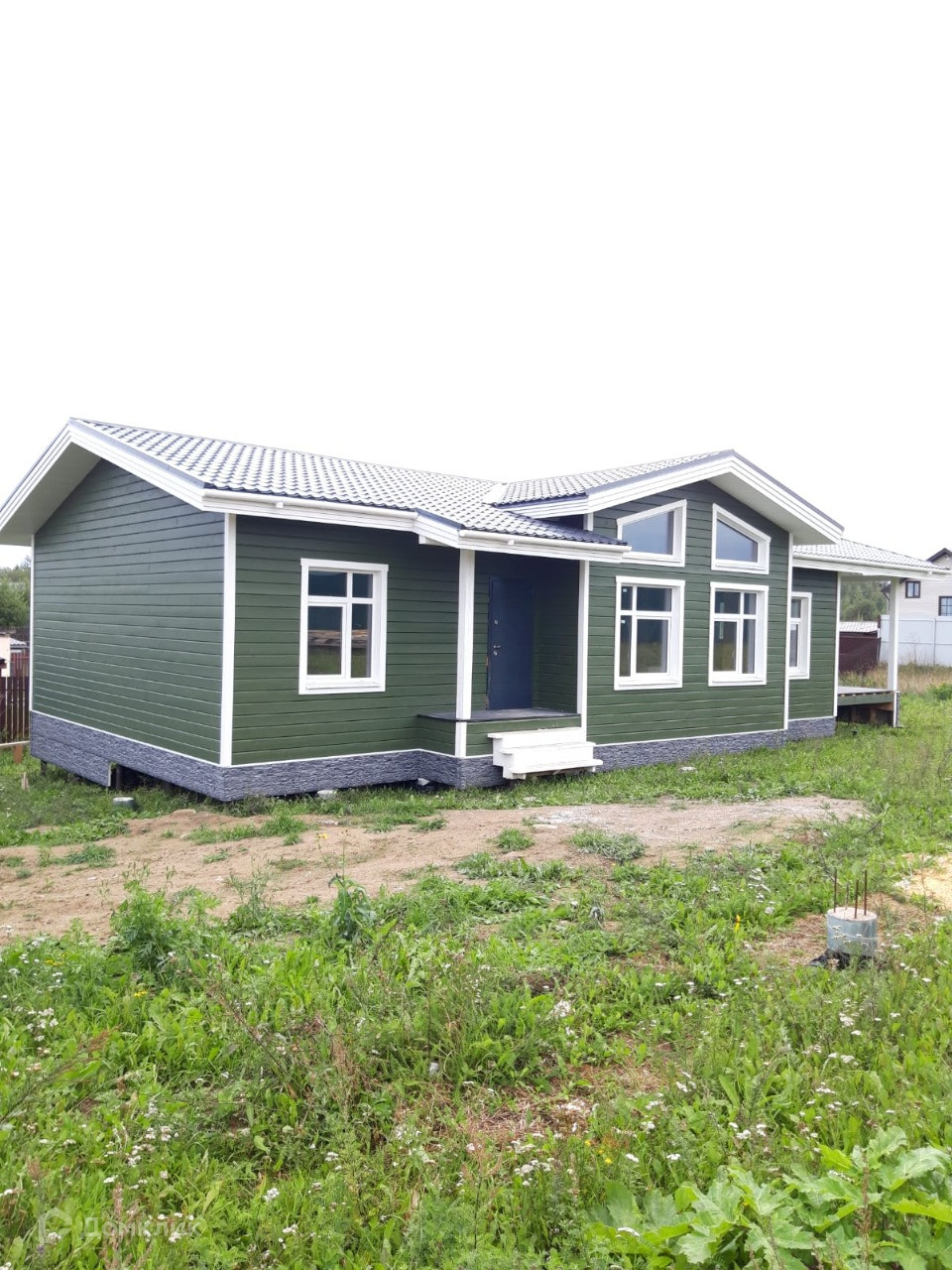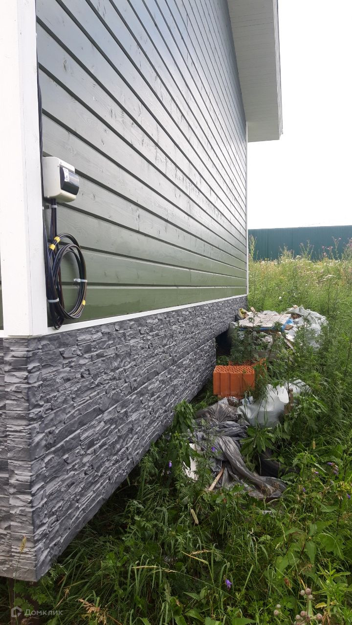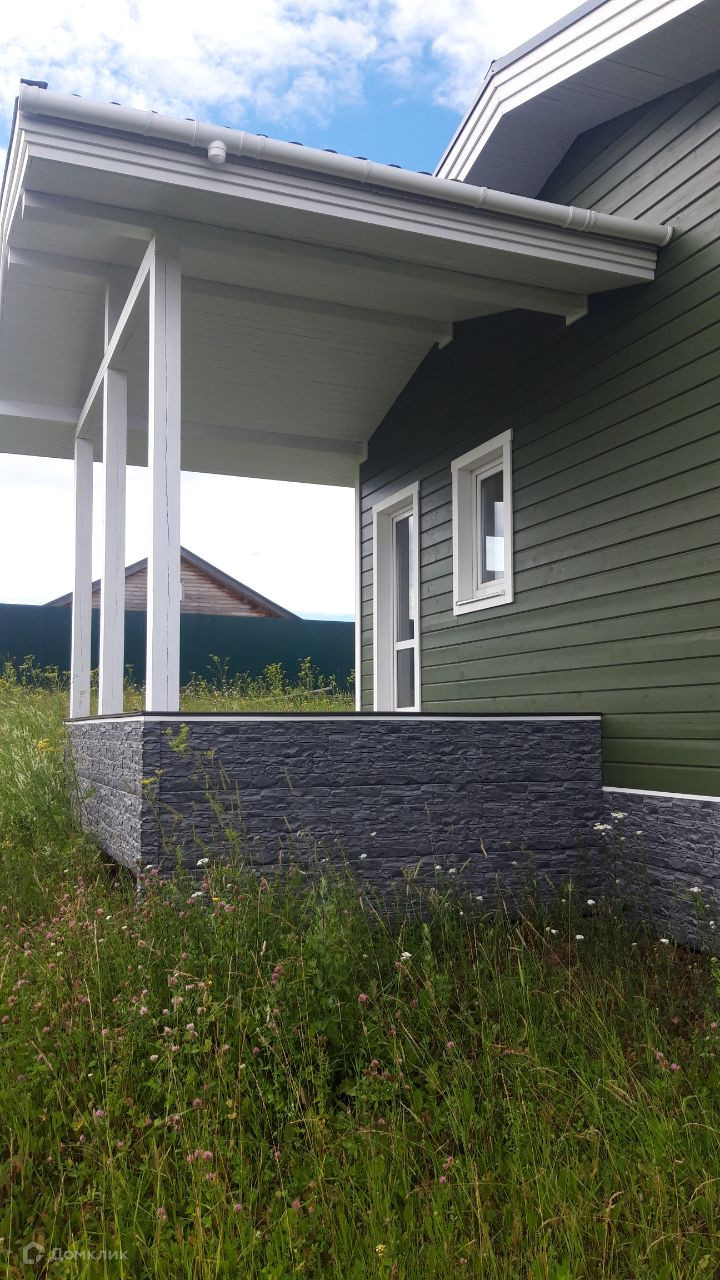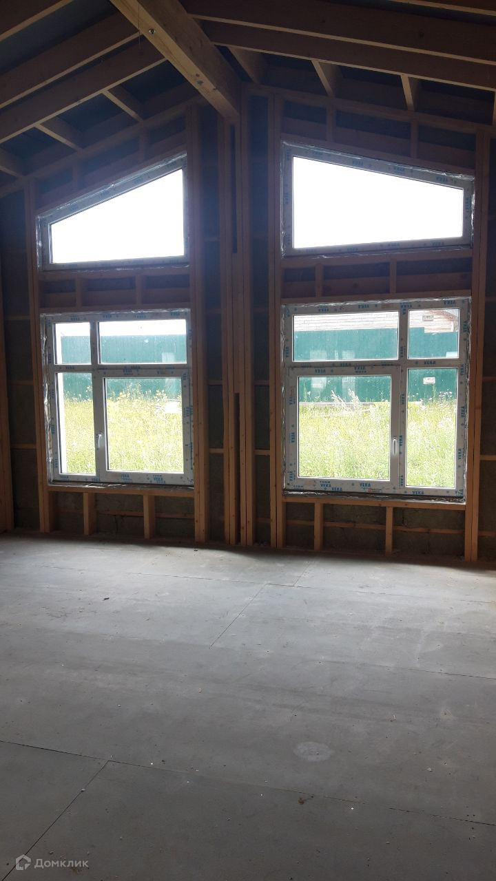свайный фундамент, кровля металлическая черепица, панорамное остекление, двухкамерные стеклопакеты. Без внутренней отделки. Внешняя отделка - имитация бруса.