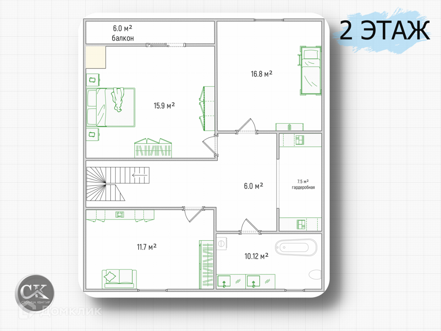 Весь маркетинговый материал является интеллектуальной собственностью компании «Столица Квартир», использование без разрешения правообладателя не допустимо.