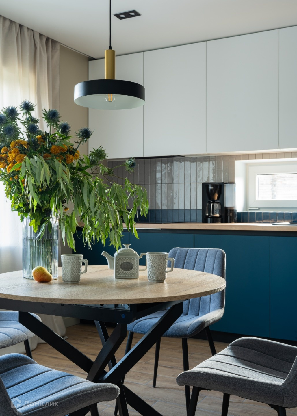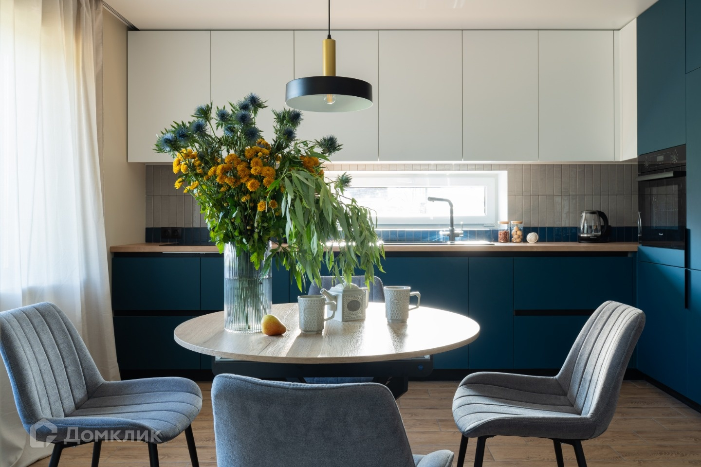 Кухня для гурманов. Она оборудована современными технологиями и полностью оснащена всем необходимым для комфортного приготовления пищи. Здесь есть просторная столешница, много шкафчиков для хранения и практичный фартук. Небольшое окно над столешницей создает естественное освещение рабочей зоны. Встроенная техника линейки Weissgauff гармонично вписывается в интерьер и создает удобство использования. За круглым столом можно обсудить много интересных тем и провести время с любимыми.