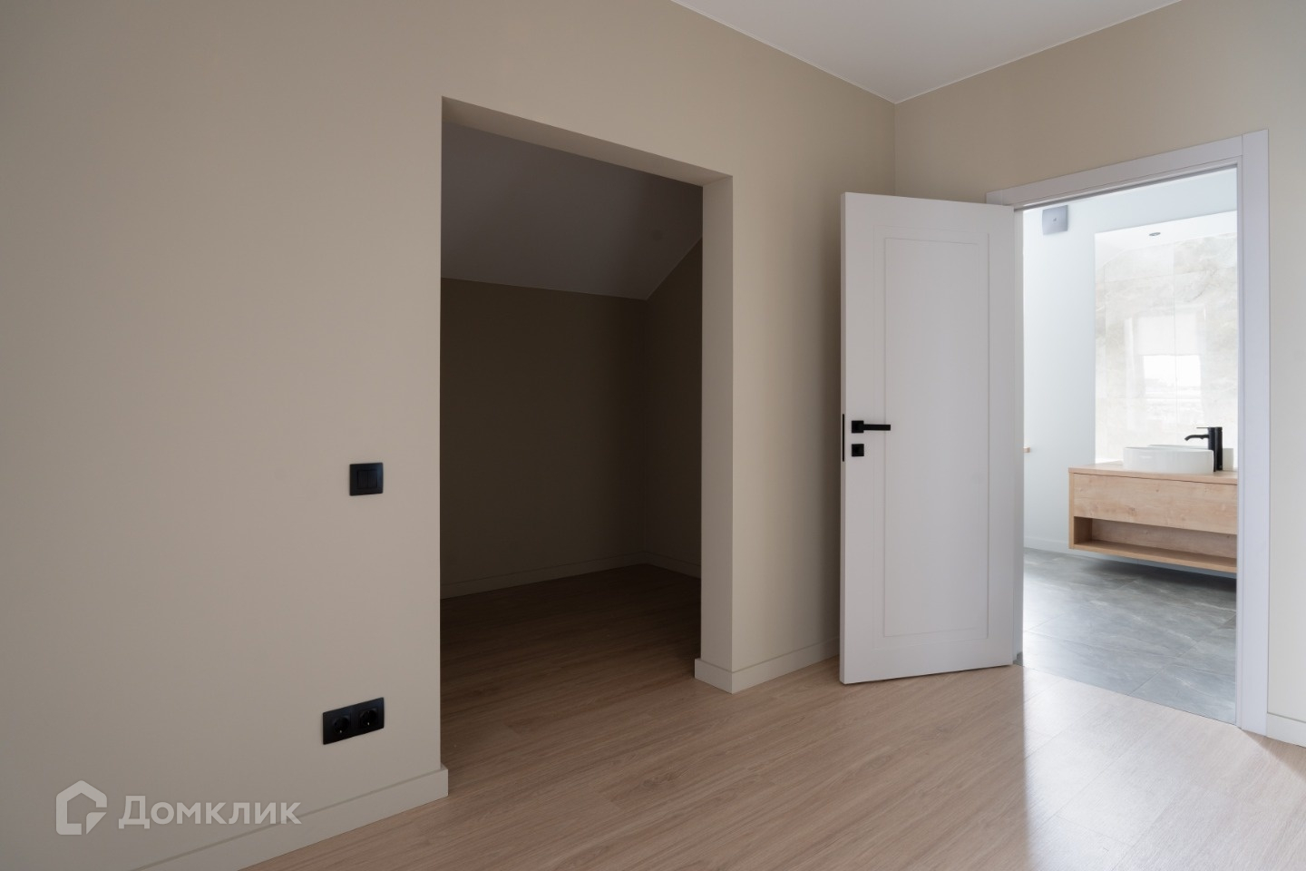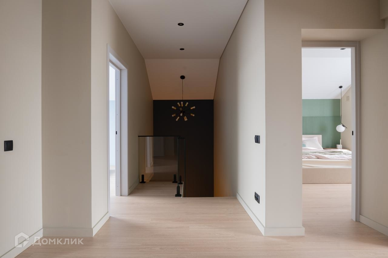 На 2м этаже расположены 3 комнаты: спальня с выходом на балкон, 2 комнаты свободного назначения, гардеробная и санузел. Отделка второго этажа выполнена в светлых оттенках, на полу ламинат в комнатах, стены окрашены. Ванная комната отделана керамогранитом, теплый пол и теплая стена для полотенец, установлена ванна, душевая, есть стиральная машина. Красивое зеркало с подсветкой во всю стену еще больше расширяет пространство. Потолок также натяжной как и на первом этаже.