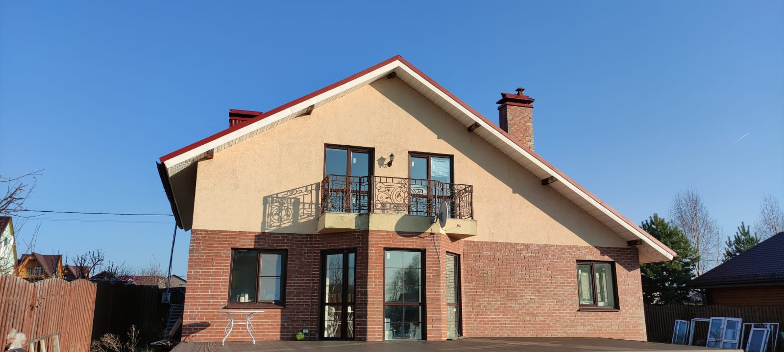 Дом 2 этажа 190 м2. Построен по технологии Дюрисол в 2014 году. Ж/б плиты перекрытия. Отделка внутри гипсокартон, снаружи утеплитель клинкер, декоративная штукатурка. Полы первый этаж с подогревом плитка, второй ламинат. 2 санузла. Терраса 55 м2. Камин.  Газ, свет, вода скважина кессон, септик, интернет оптика. Котельная с отдельным входом. В доме не жили. Готов к заселению. Участок 12 соток. Засеян газонной травой. Один взрослый собственник.
