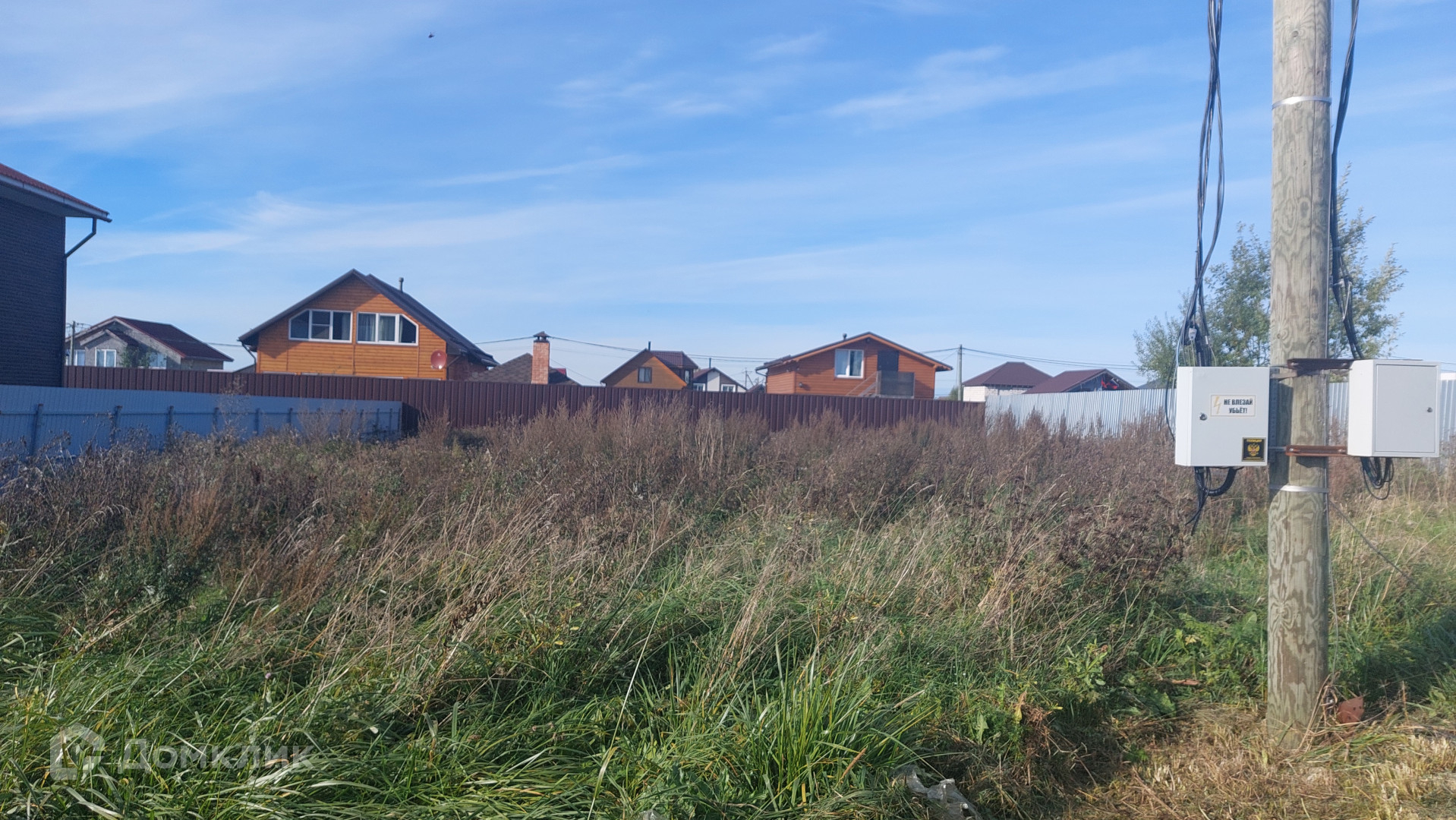 Ровный, сухой площадью 6 соток, 20х30. С трех сторон забор. На участке скважина 35 метров, делали геодезию, есть отчет, электричество 15 кВт. Соседи почти все построились и живут постоянно.