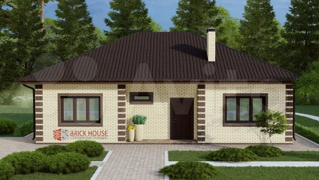 Дом 112 кв.м., одноэтажный, кирпичный, с удобной и функциональной планировкой - просторная кухня-гостиная, три изолированные комнаты, гардеробная, санузел , бойлерная, просторный холл почти 10 кв.м. плюс прихожая, открытое крыльцо и терраса.