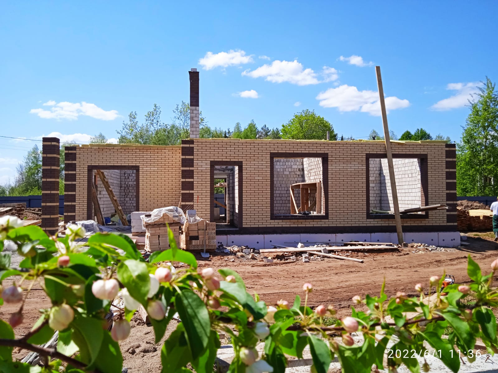Стены - Силикатный кирпич + Каменная вата + облицовка Керамический кирпич. Перегородки - силикатный кирпич. Кровля - Мягкая кровля. Водосточная система - ПВХ ДЕКЕ. Подшив пластик - ПВХ ДЕКЕ с перфорацией, Окна профиль ELEX 70мм, 3х камерный стеклопакет. Канализация - два кольца - d1,5м и перелив в два кольца d1,5м, трубы заведены в дом. Скважина - 30 метров, водопровод заведен в дом. Электричество. Газ.
