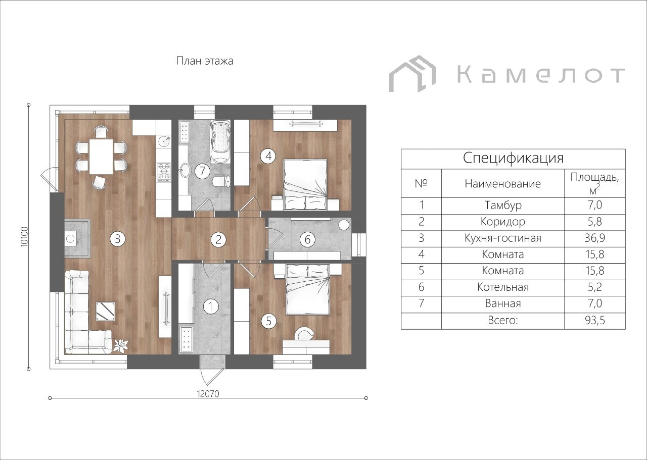 Общая площадь дома 93,5 м2: