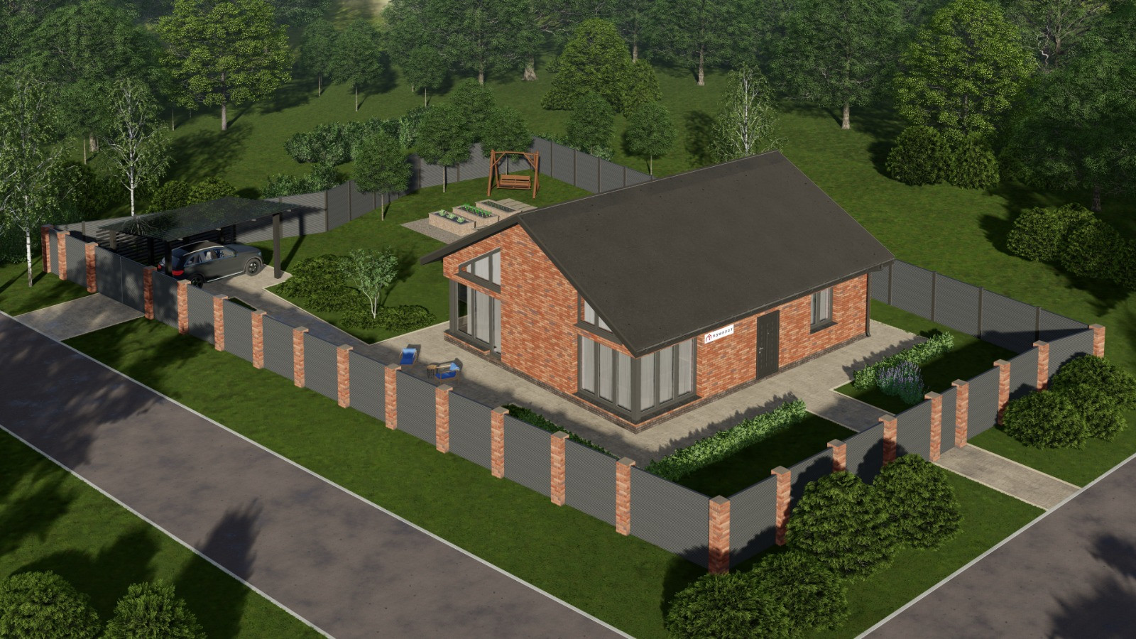 Крыша скатная, материал Гибкая черепица, цвет серый