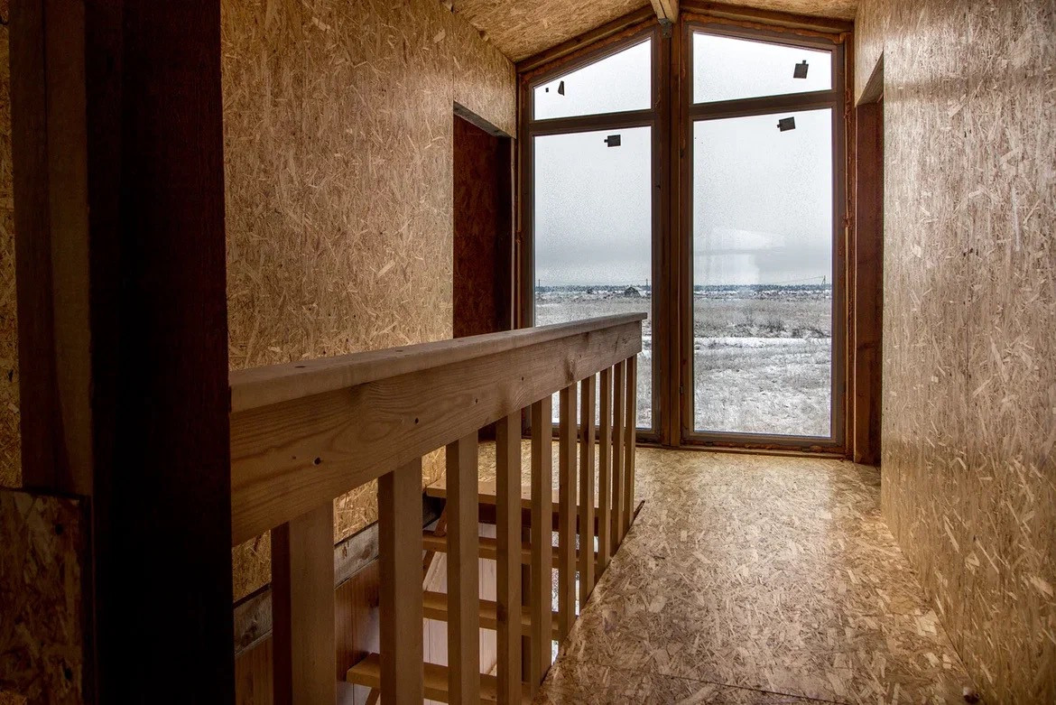 Очень много света и ощущений простора в доме. На 2 этаже также панорамные окна в пол.