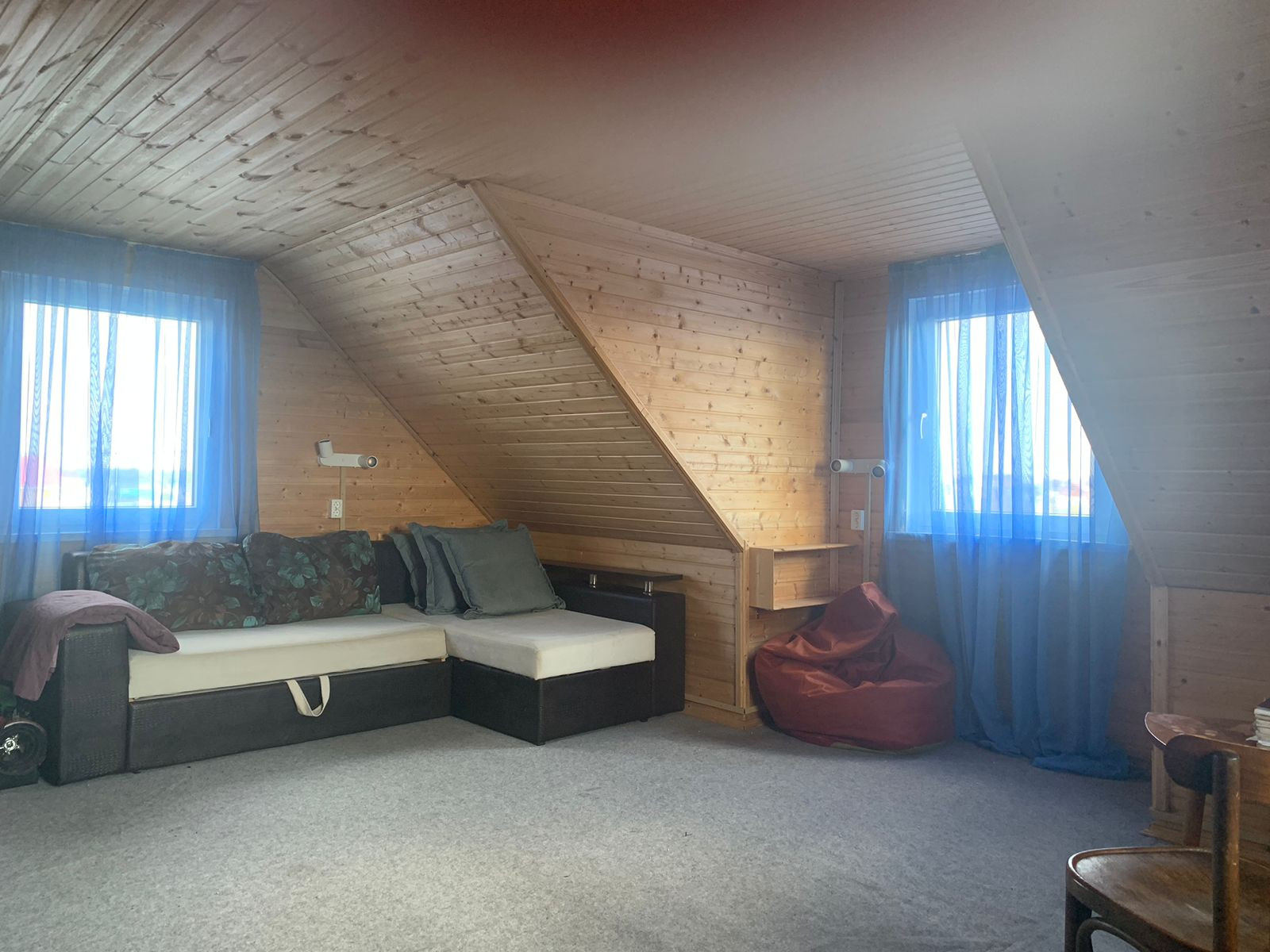 На втором этаже - большая комната, которую можно разделить на 2 спальни.