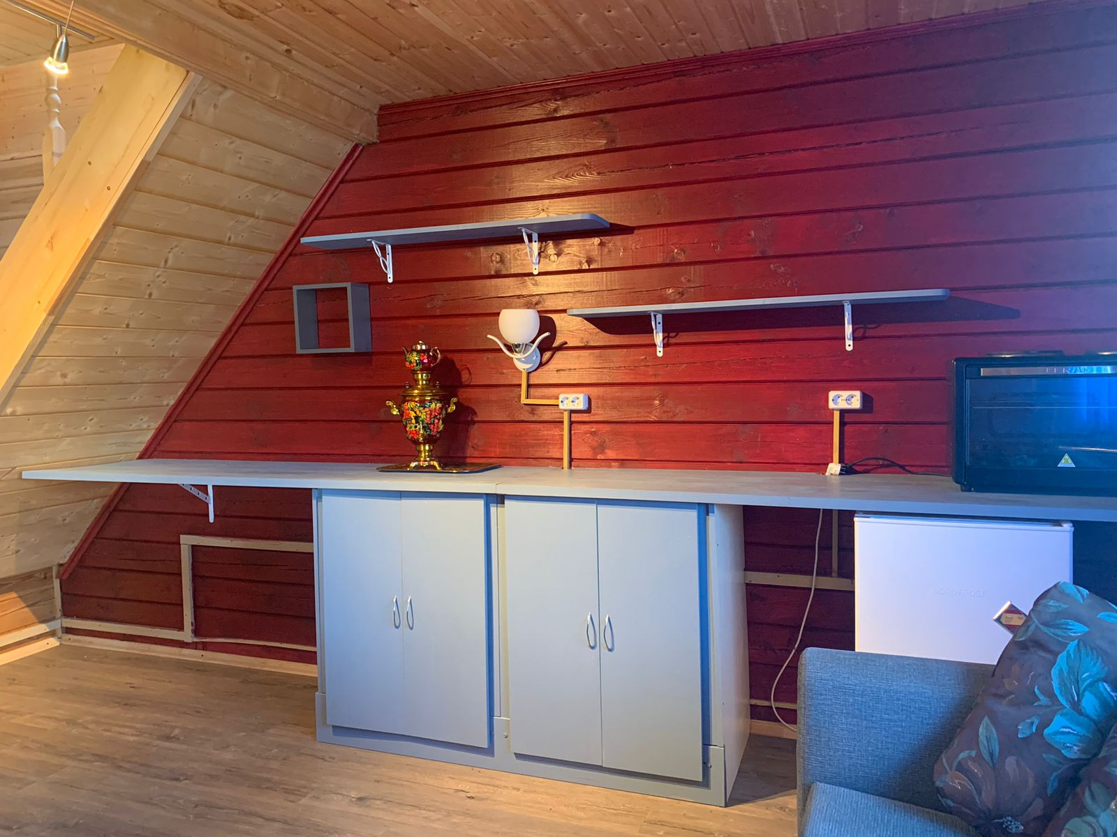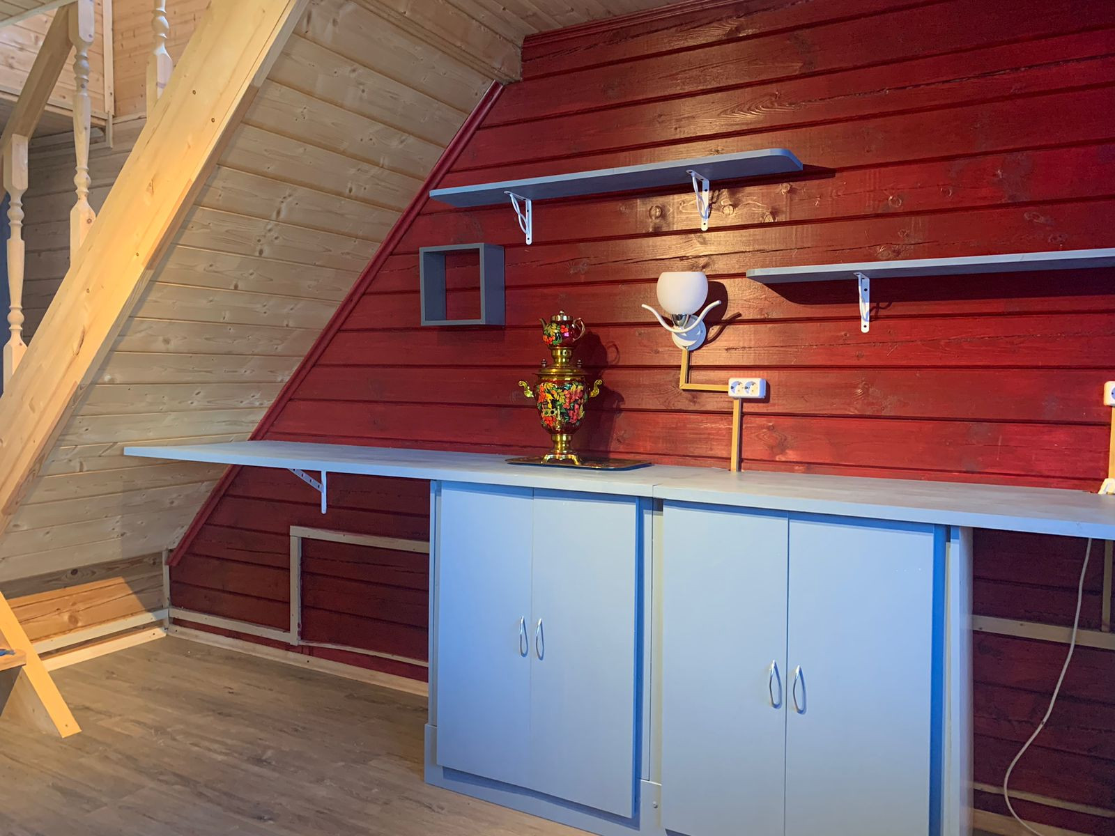 На первом этаже кухня- гостиная, ванная комната, санузел, парная.