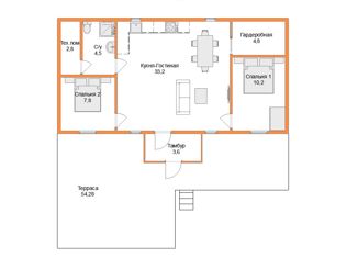 Общая площадь: 54 м2
