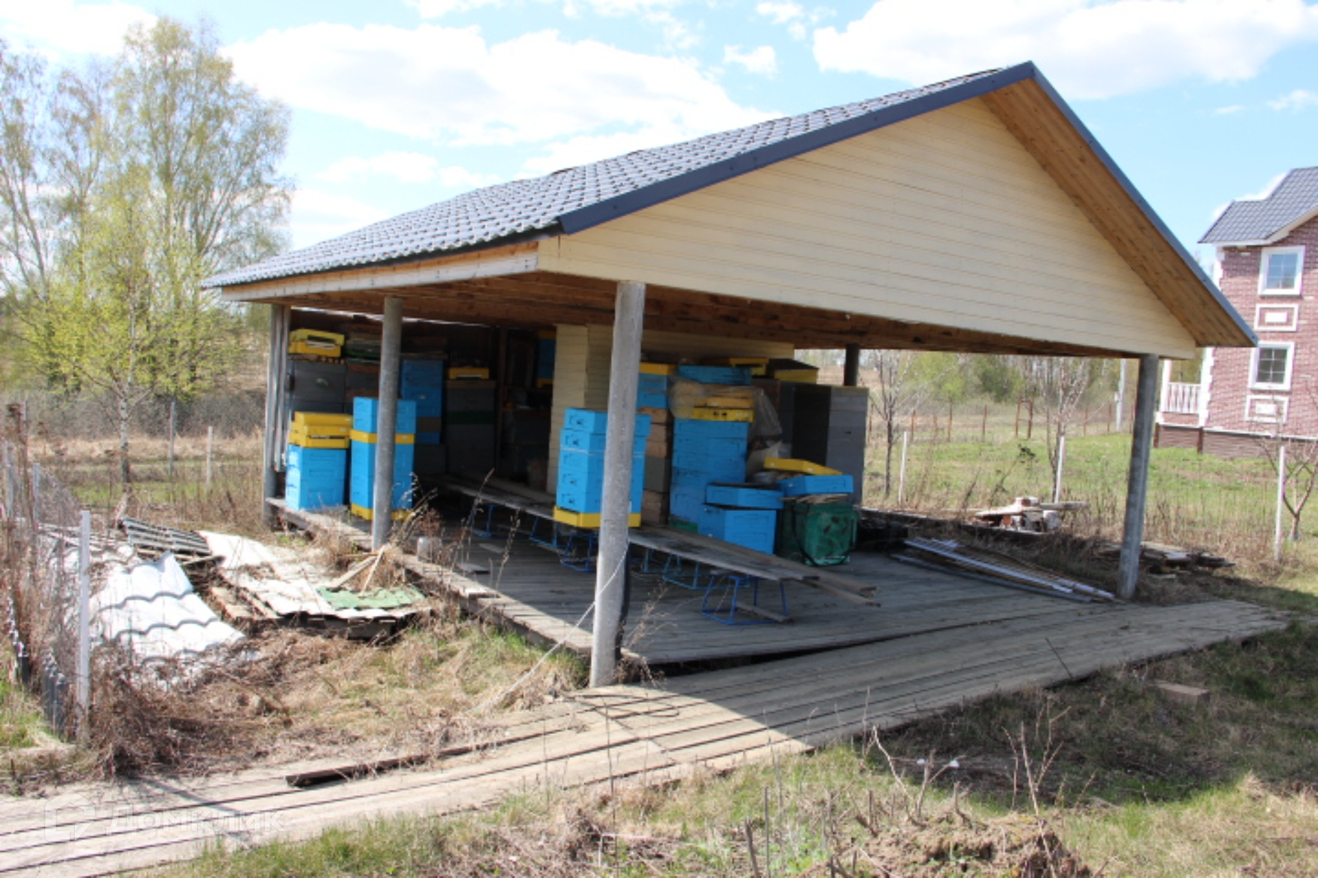 На участке 2 колодца по 10 колец. Одним запитан дом, второй планировался для полива сада-огорода и запитки бани. Построен навес 35м² к нему подведено электричество.