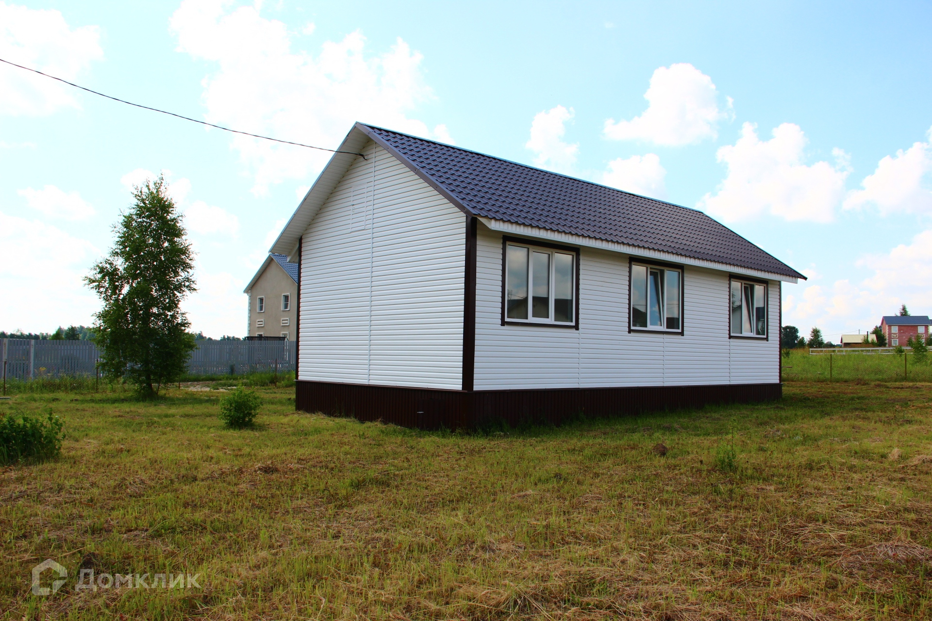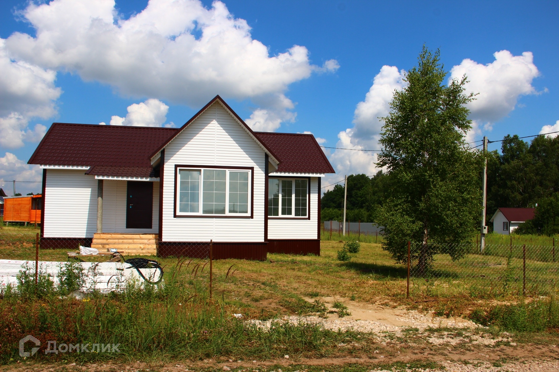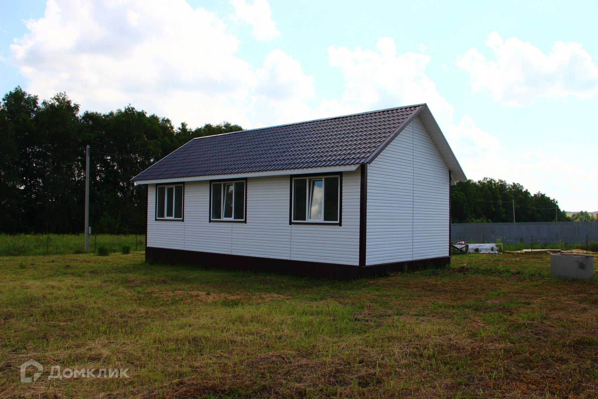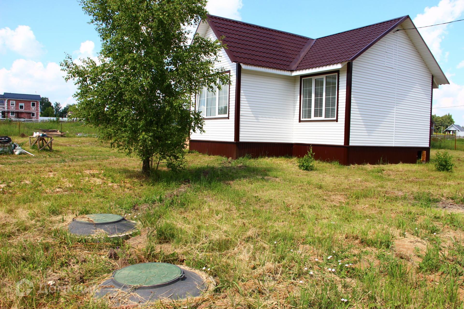 Каркасный дом на свайном фундаменте, построенный из качественных материалов, с утеплением минеральной ватой 15 см (пола, стен и потолка), с внутренней отделкой стен из двух слоев гипсокартона и декоративной штукатуркой, полами с покрытием из ламината, натяжными потолками, окнами ПВХ и керамической плиткой в коридоре и ванной комнате с водяным теплым полом запитанным от котла. Черновой пол выполнен из ОСБ фанеры, стены отделаны сайдингом с вент зазором и крыша покрыта металлочерепицей. Для удобства доступа на чердак есть люк с деревянной складной лестницей. В доме предусмотрена просторная гостиная с кухней, три спальни, санузел и коридор. Коммуникации заведены в дом: электричество 220/380V 15 кВа, водоснабжение от колодца с греющим кабелем, ГВС от водонагревателя и канализация - двухуровневый септик.