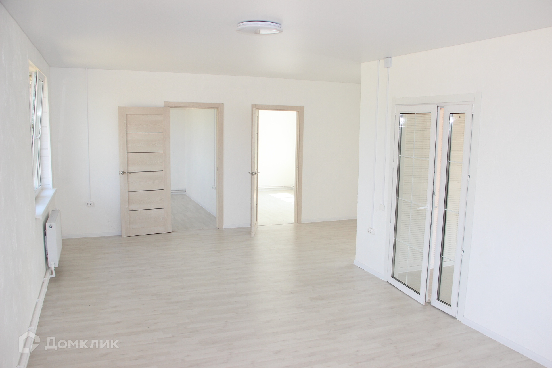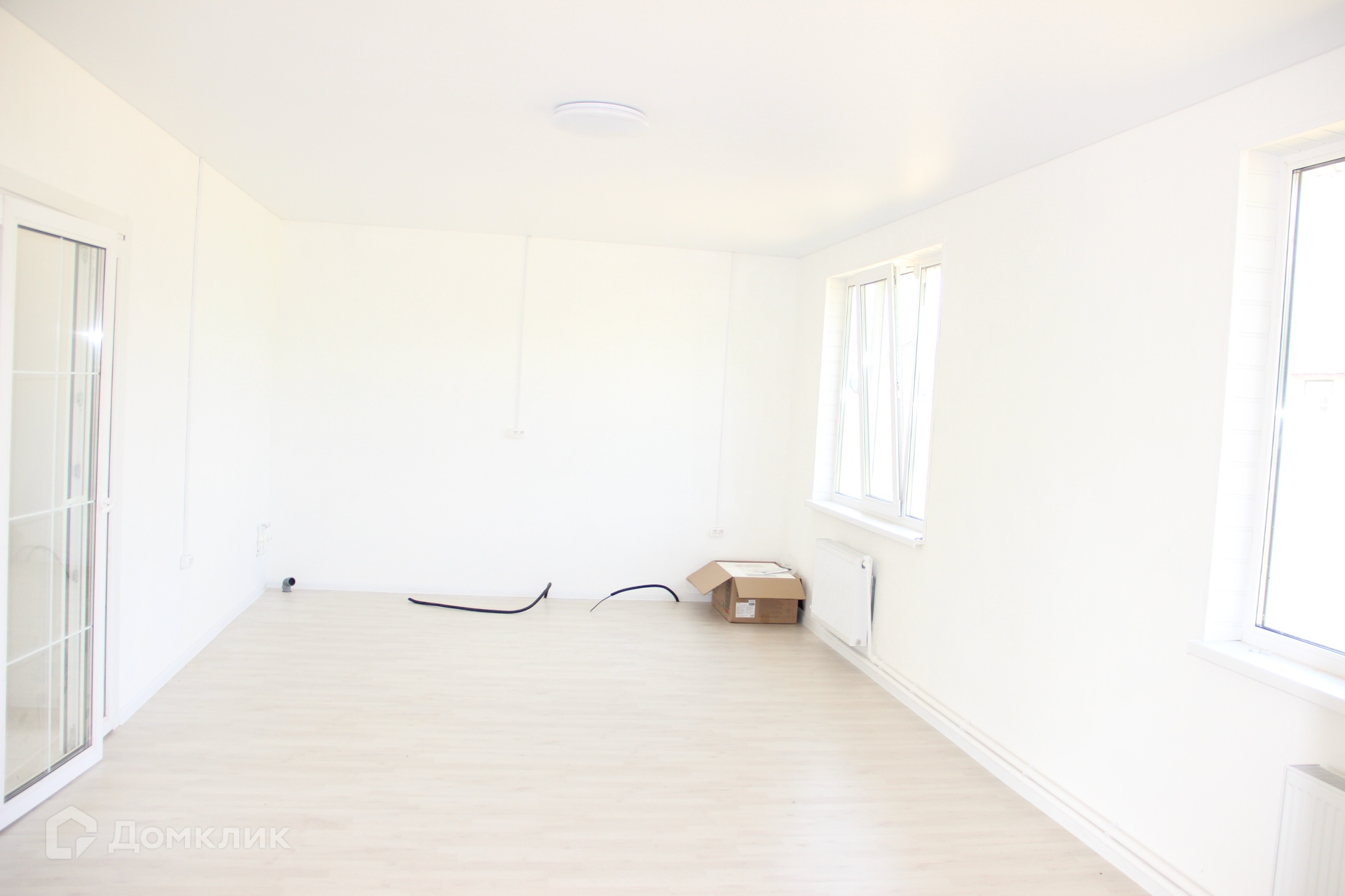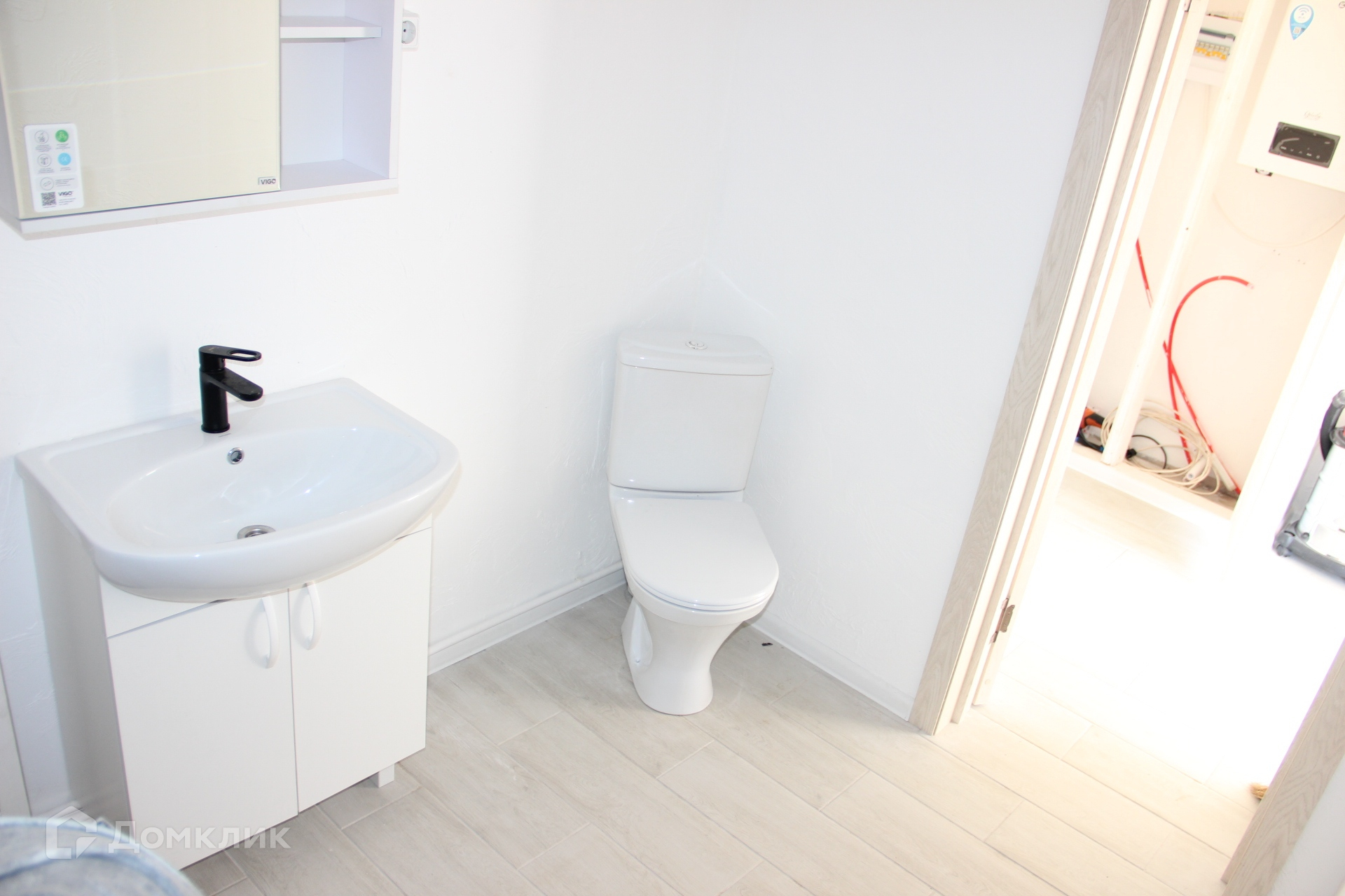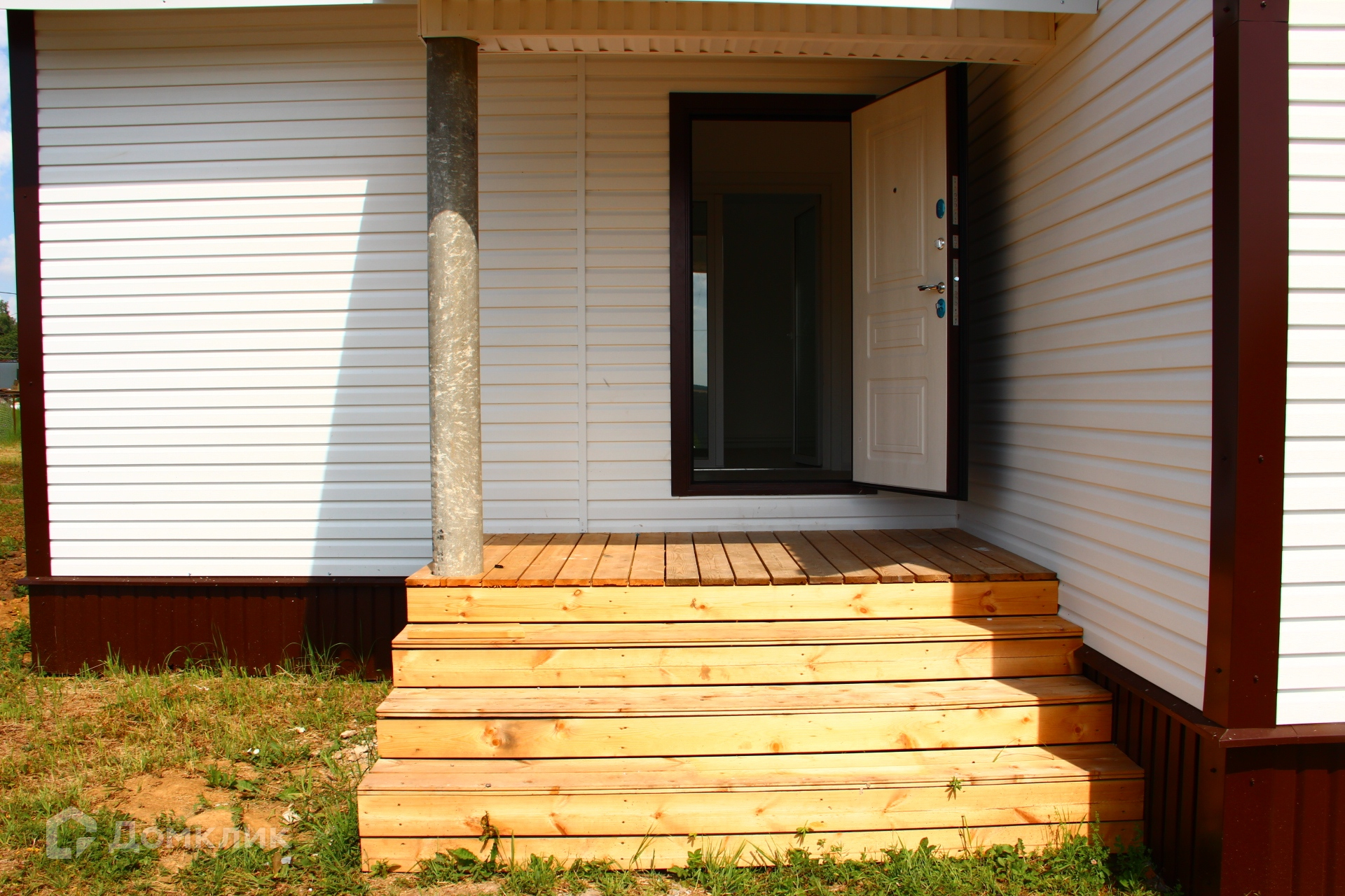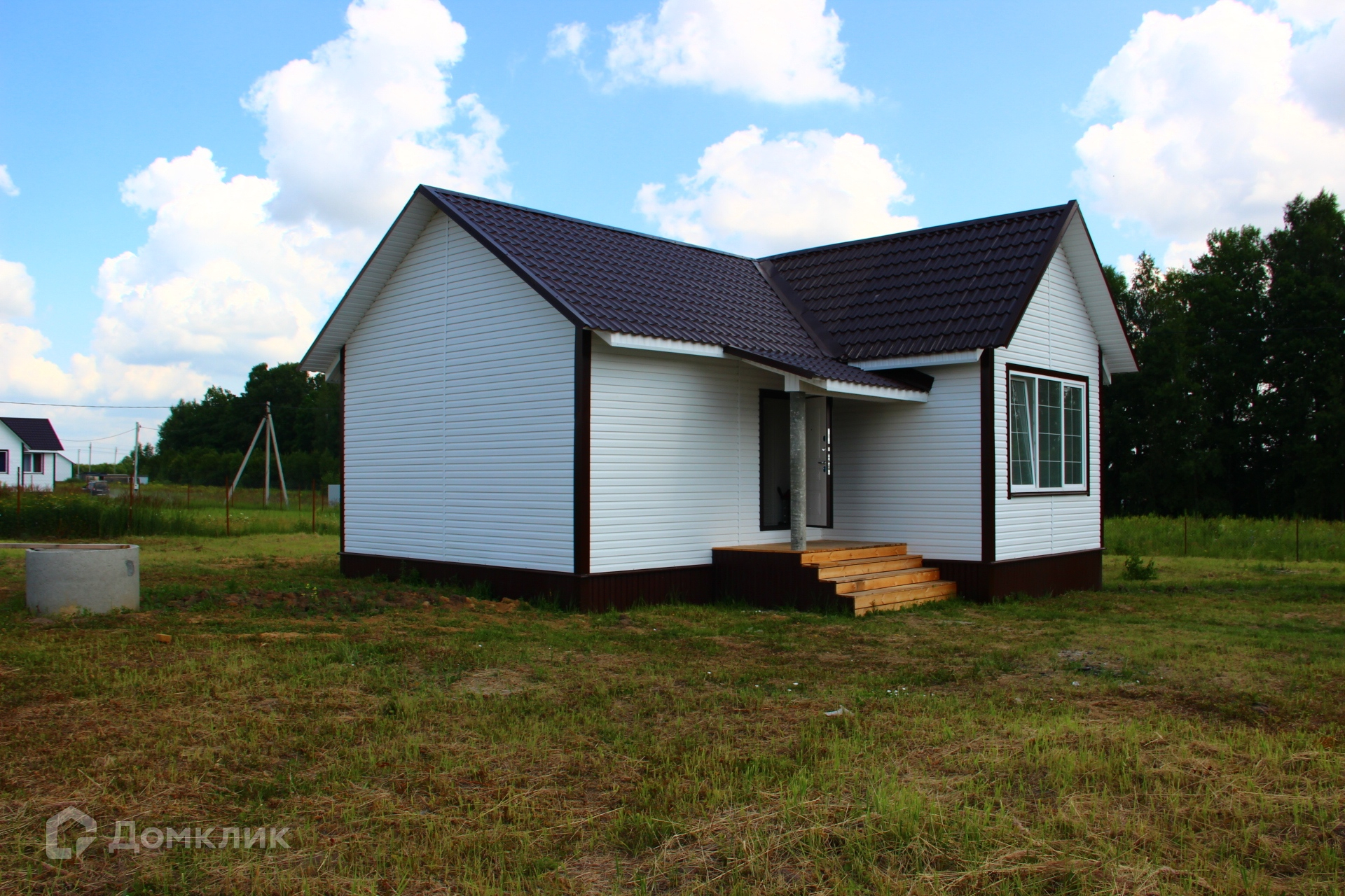 Каркасный дом на свайном фундаменте, построенный из качественных материалов, с утеплением минеральной ватой 15 см (пола, стен и потолка), с внутренней отделкой стен из двух слоев гипсокартона и декоративной штукатуркой, полами с покрытием из ламината, натяжными потолками, окнами ПВХ и керамической плиткой в коридоре и ванной комнате с водяным теплым полом запитанным от котла. Черновой пол выполнен из ОСБ фанеры, стены отделаны сайдингом с вент зазором и крыша покрыта металлочерепицей. Для удобства доступа на чердак есть люк с деревянной складной лестницей. В доме предусмотрена просторная гостиная с кухней, три спальни, санузел и коридор. Коммуникации заведены в дом: электричество 220/380V 15 кВа, водоснабжение от колодца с греющим кабелем, ГВС от водонагревателя и канализация - двухуровневый септик.