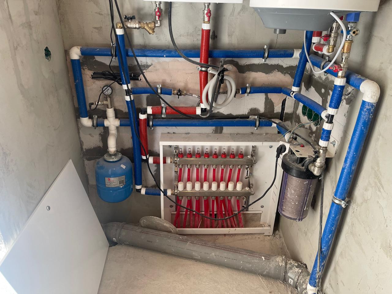•    Отопление: водяной теплый пол. Электрический котел;