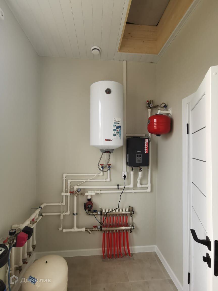 Скважина: под домом, 50 м, скважинный насос Belamos, автоматика, фильтр, Бойлер нагрева горячей воды 100л, 2,5 кВт.