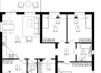 Общая площадь: 125 м2