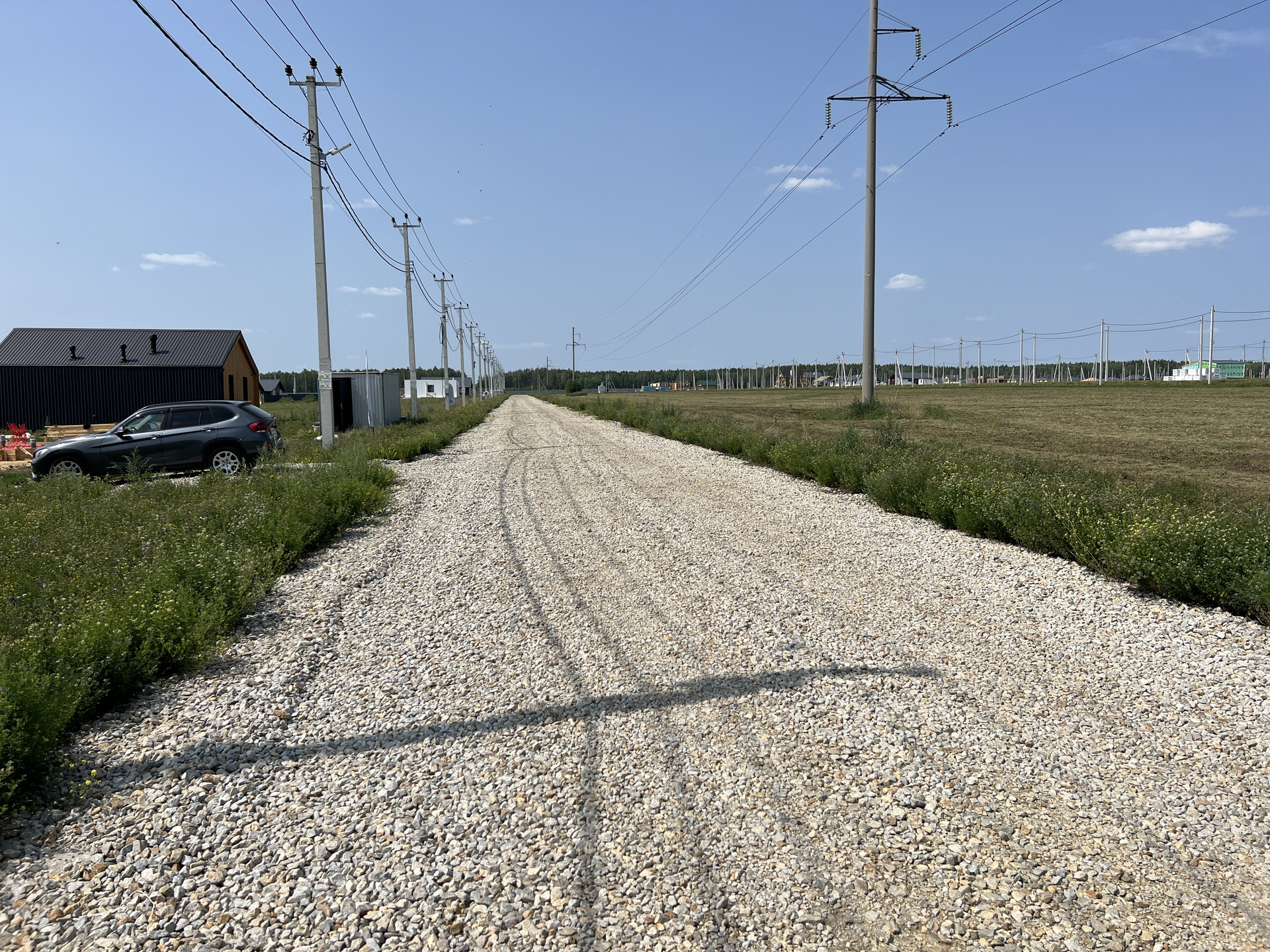 Земельный участок ровный, электричество в поселок заведено, подъездные пути к участку отсыпаны, дороги в Поселке асфальтированы