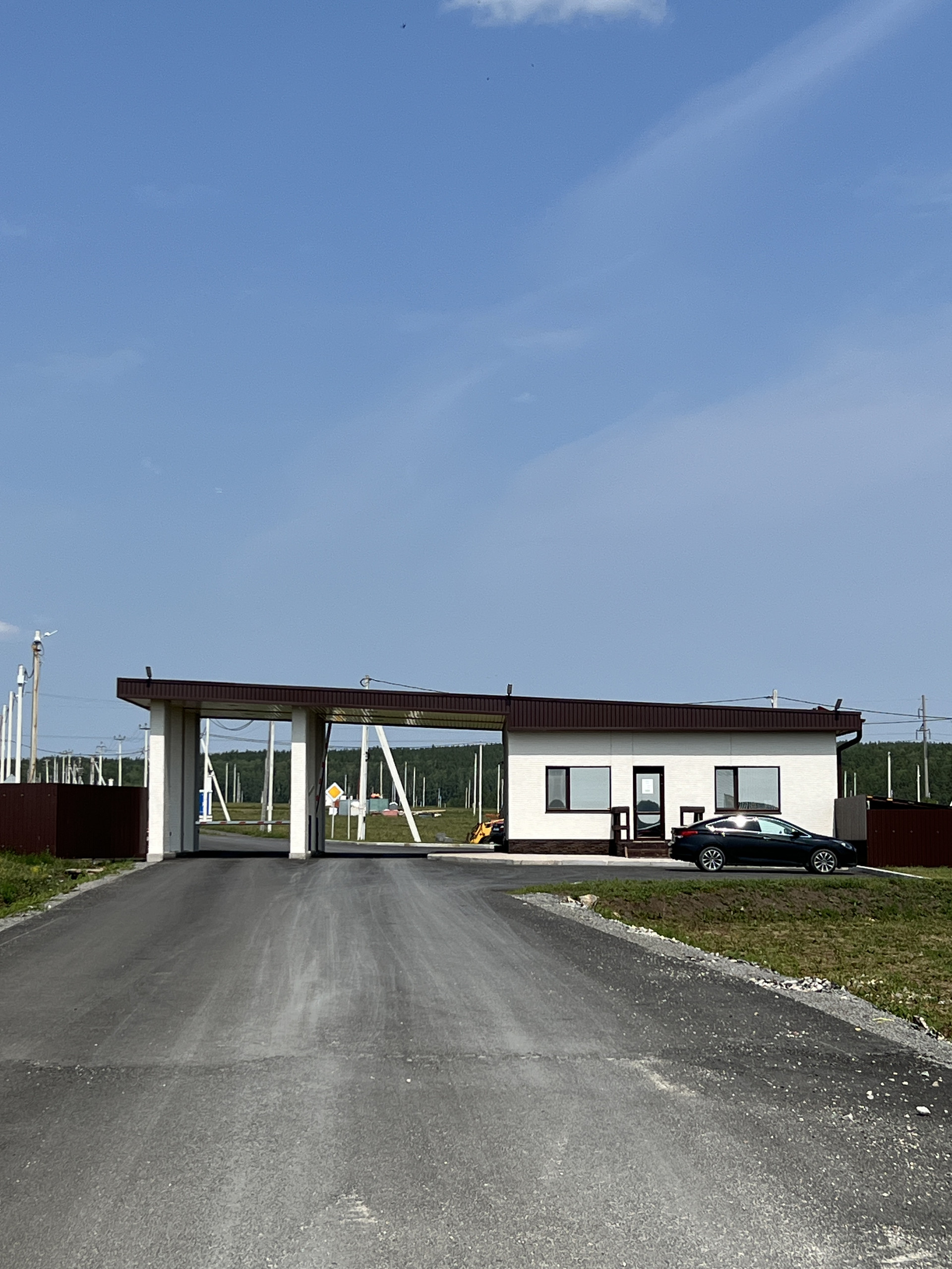 Коттеджный поселок закрытого типа, при въезде шлагбаум и охрана.
