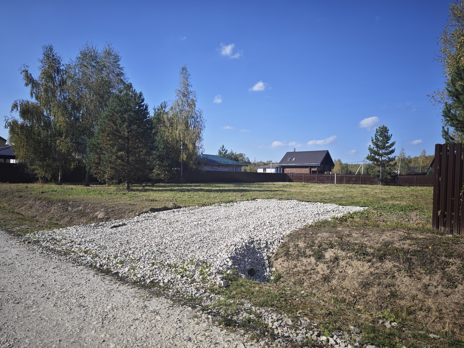 Участок с трёх сторон обустроен забором,сделан въезд на участок.