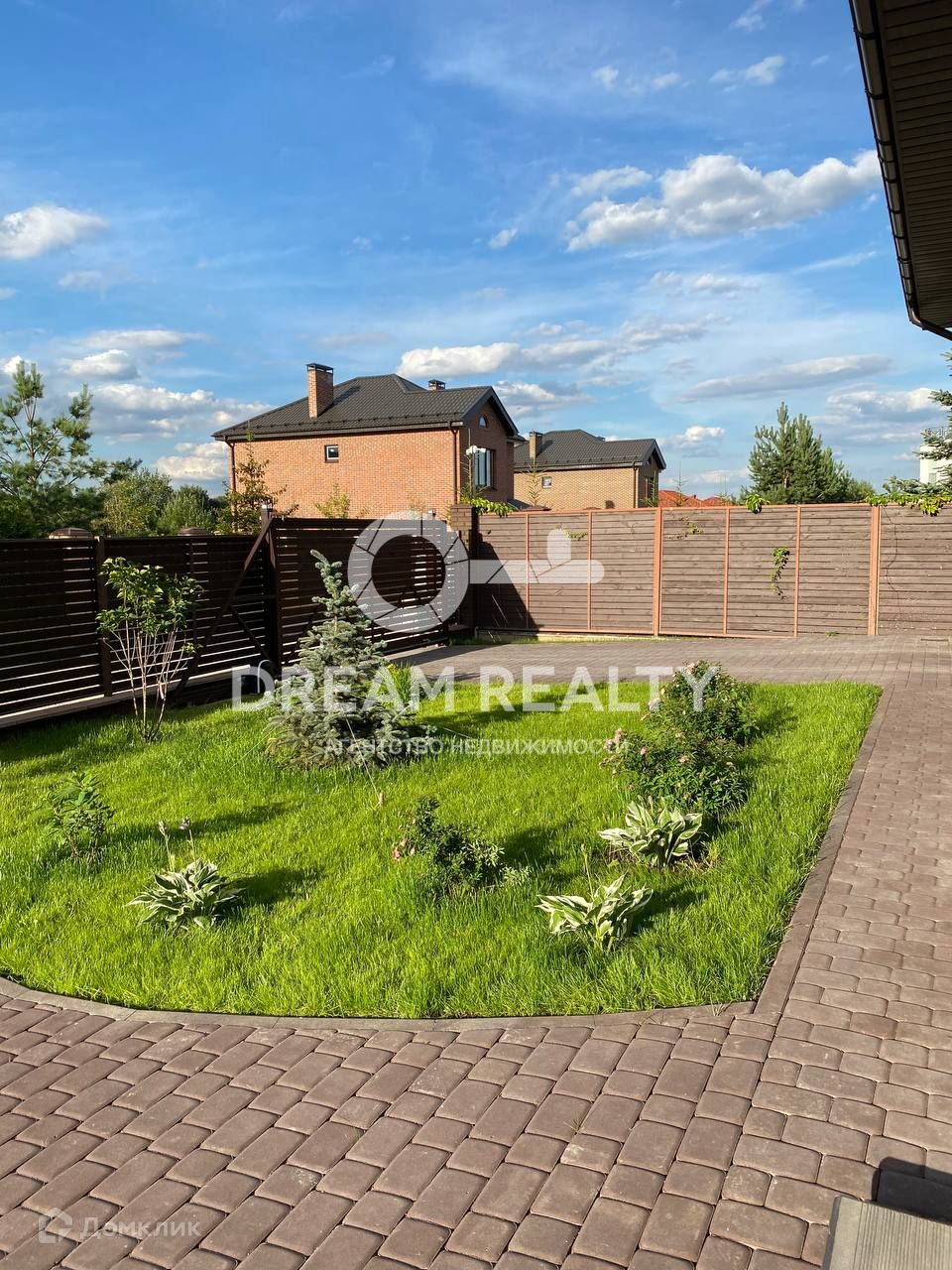 Отмостка, дорожки и парковка на 4 м/м выложены тротуарной плиткой.