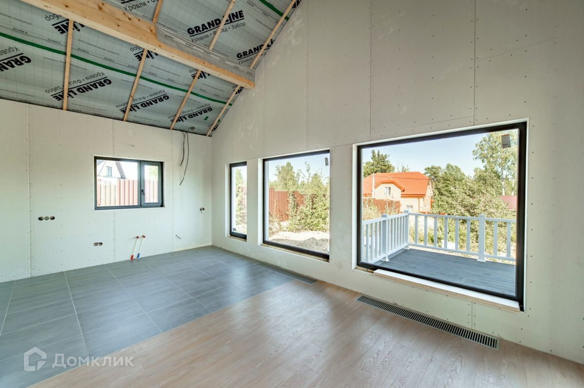 В доме всё подготовлено под финишную внутреннюю отделку: сделана разводка всех коммуникаций, уложено напольное покрытие (качественный немецкий ламинат и керамогранит), установлена исключительно дорогая европейская сантехника в санузлах и положена плитка на стены, куплен кондиционер, смонтирована система отопления.