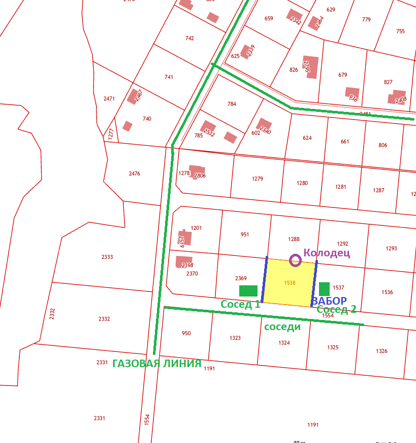 ГАЗ проведен на соседней улице, в пределах 100М, на фото отражено зеленой линией. Подключение 140 000р.