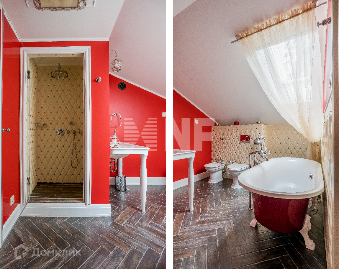 В доме предусмотрено 5 спален с личными санузлами авторского исполнения. Каждая комната выполнена в неповторимом стиле и является настоящим предметом искусства и гордости владельца. Притягивает внимание роскошный ванный комплекс в ониксе с подсветкой и сауной из кедра.