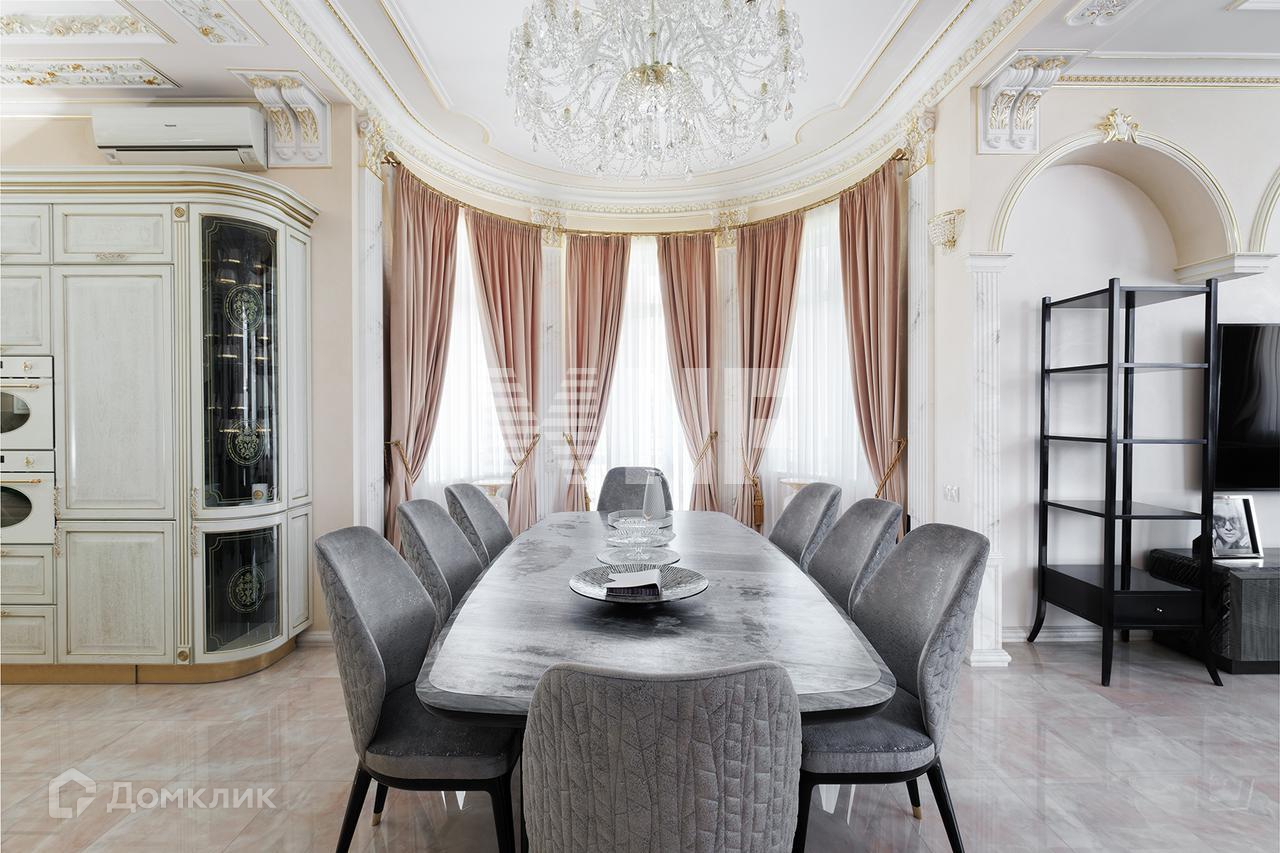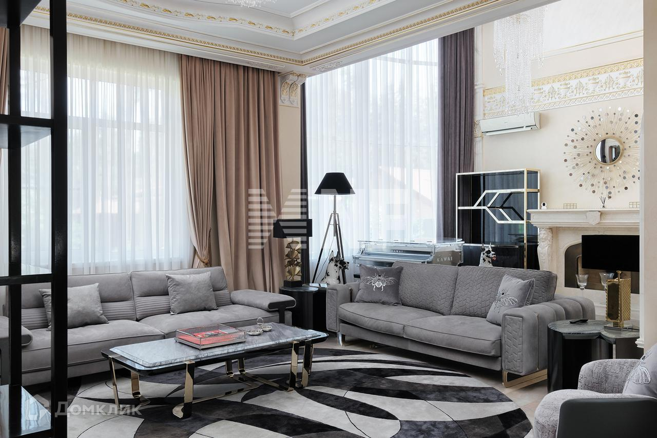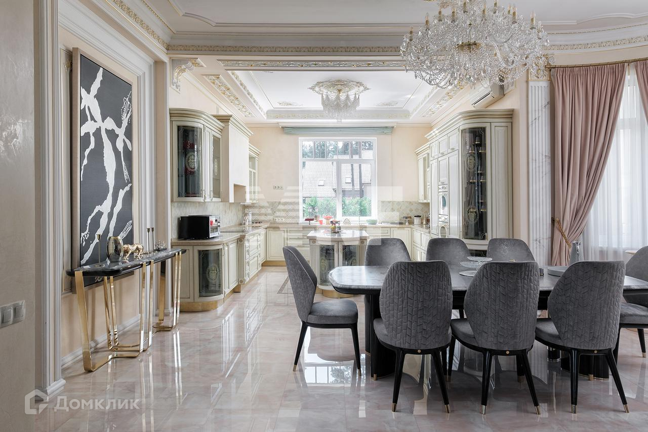 На первом этаже находятся просторная кухня-столовая со встроенной техникой SMEG, Miele, Liebherr, гостиная со вторым светом, потолками более 5 метров, каминной зоной, гостевая спальня, гардеробная и санузел. Мебель премиальных итальянских производителей, эксклюзивные люстры, европейский текстиль.
