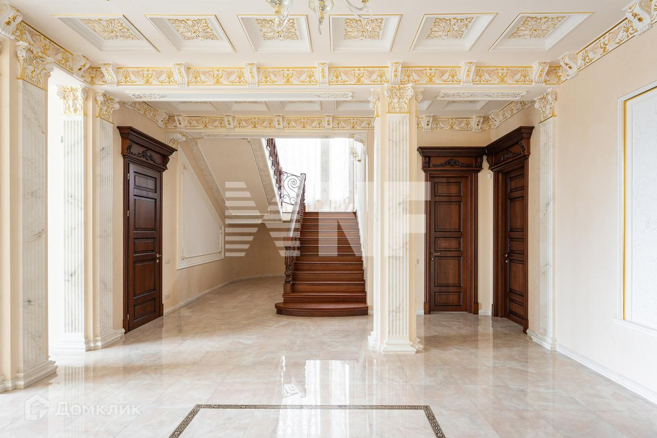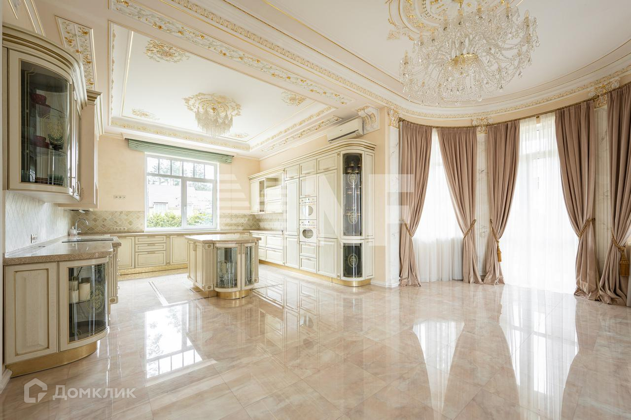 На первом этаже находятся просторная кухня-столовая со встроенной техникой SMEG, Miele, Liebherr, гостиная со вторым светом, потолками более 5 метров, каминной зоной, гостевая спальня, гардеробная и санузел. Эксклюзивные люстры идеально сочетаются с лепниной. На втором этаже размещены 3 спальни, две из которых — это мастер-спальни с собственной гардеробной и санузлом. На третьем этаже расположена комната отдыха с зоной для занятий спортом, spa-зона с сауной и гостевая спальня. В дом заведены  центральные коммуникации. 40 минут до центра Санкт-Петербурга, 1 час до аэропорта Пулково.