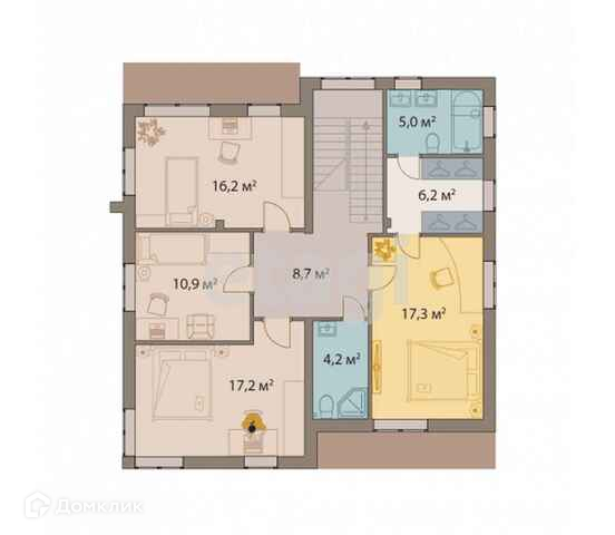 На первом этаже расположена большая и светлая кухня-гостиная, в которой вашей семье будет комфортно проводить время за совместными занятиями и приглашать много гостей. Внизу также предусмотрено место для сауны, чтобы можно было полноценно расслабиться в любое удобное время, и места для хранения вещей и хозяйственные помещения. На втором этаже у каждого личное пространство для отдыха и увлечений. Планировка включает в себя отдельную мастер-спальню с собственной ванной и гардеробной для мамы и папы, три детские комнаты и дополнительный санузел на этаж.