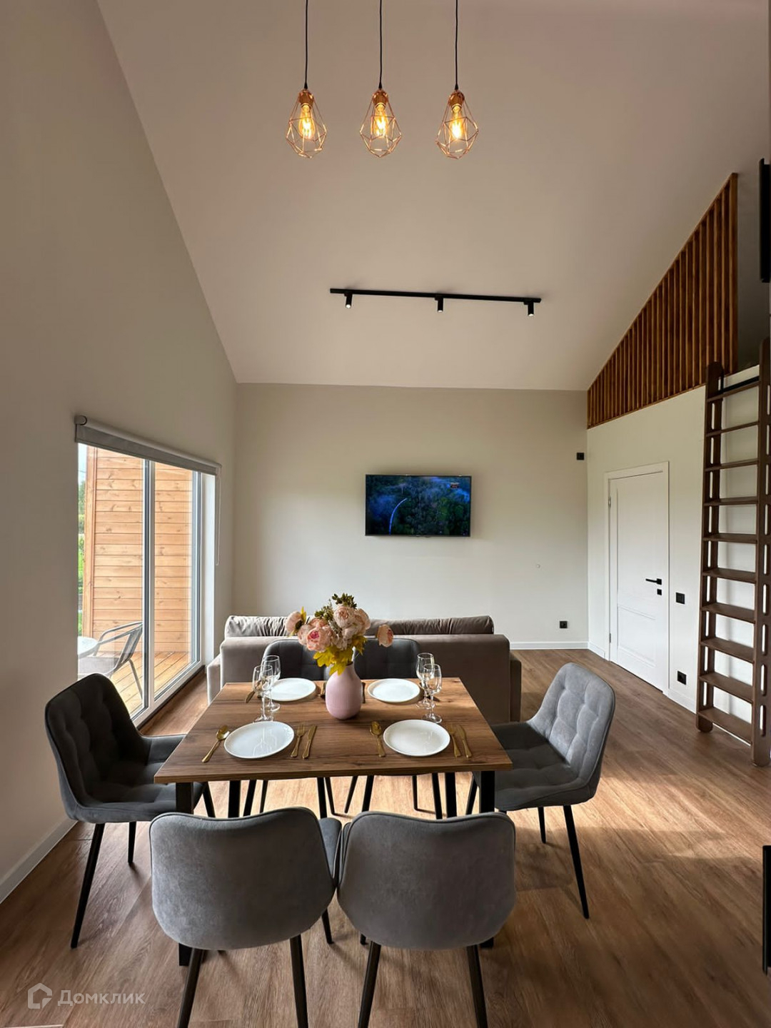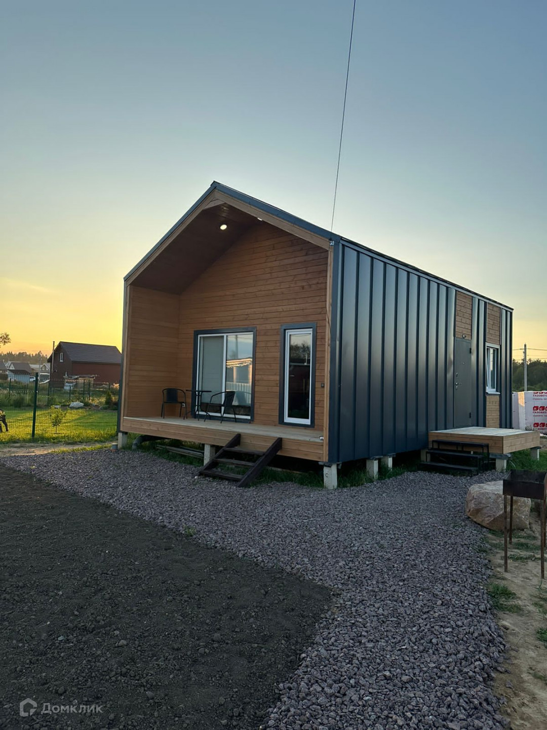 О доме: современный, новый дом площадью 53 м2 + 9 м2 терраса. Строительство по проекту с гарантийным периодом: каркасный с утеплением, основание винтовые сваи. Дополнительно заказывалось усиленное утепление. Просторная гостиная со "вторым" светом. Дом расположен на крайнем участке в КП: вид из окон дома на просторы красивой холмистой местности без застроек.