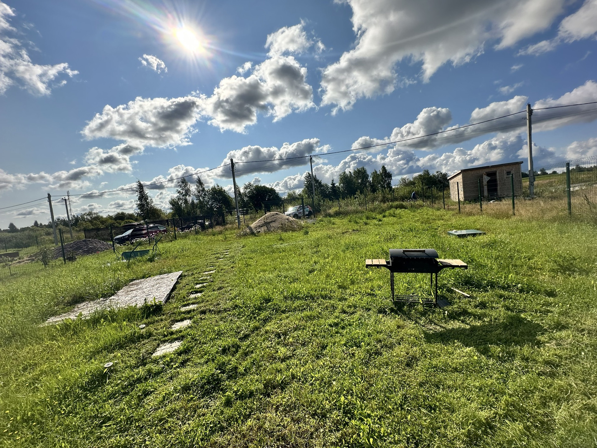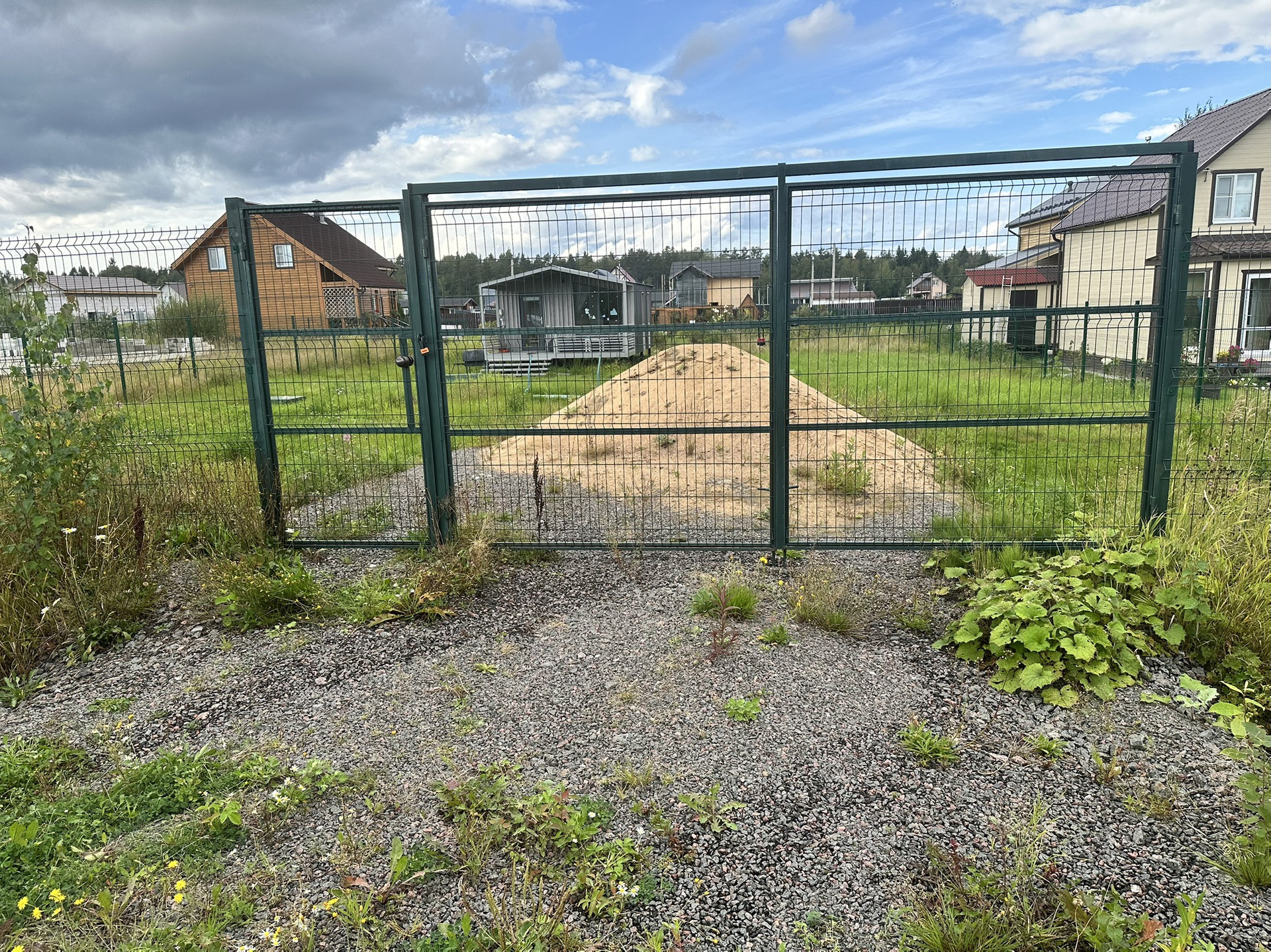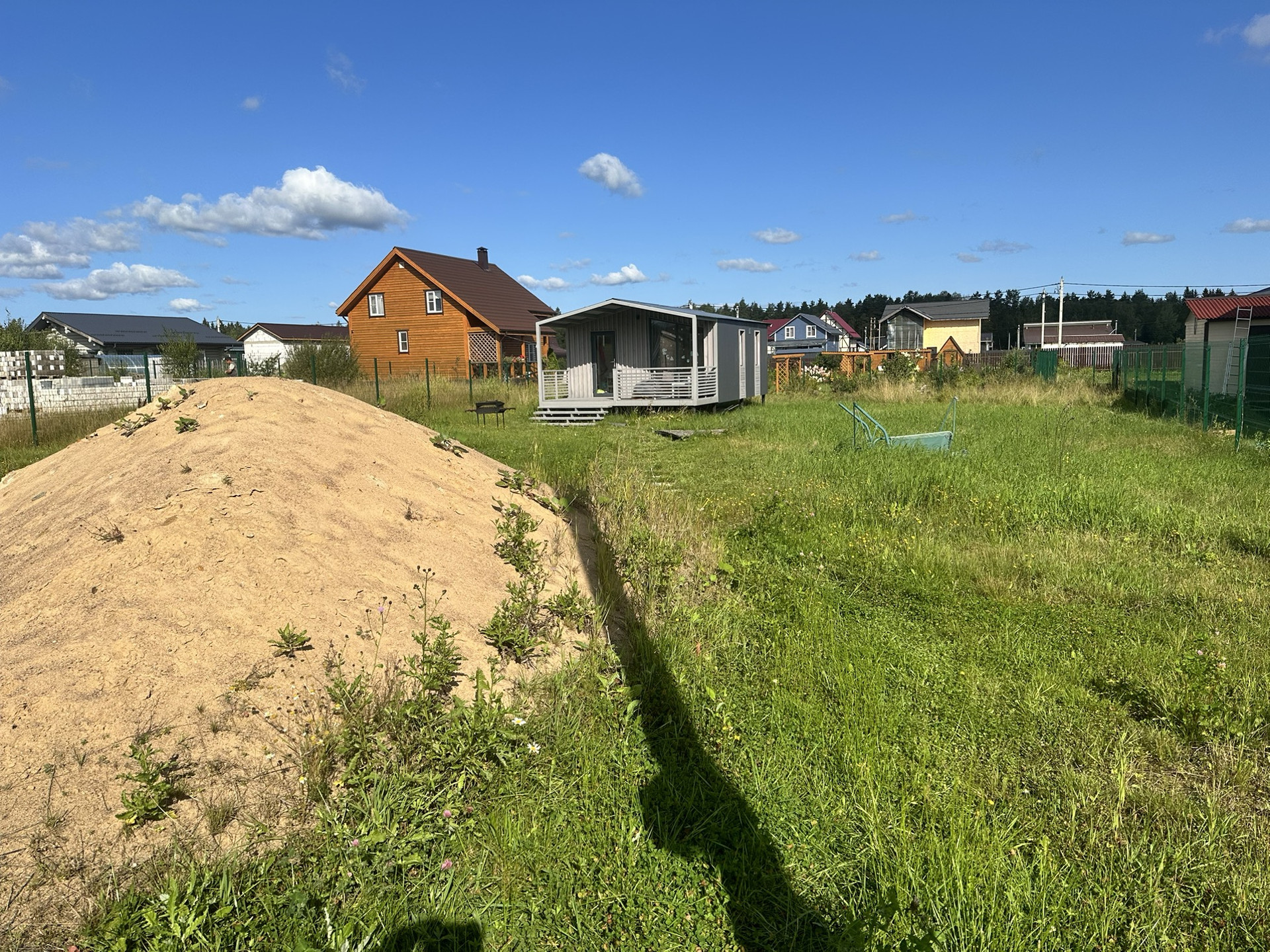 На участке отсыпан заезд , на два машина места за забором ( на фото не видно закрывает песок )