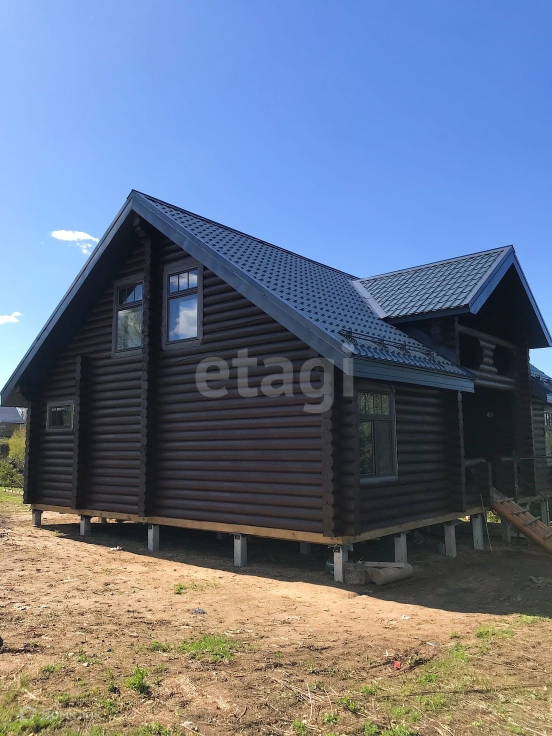 Современный дом из архангельского оцилиндрованного бревна, прочный свайный фундамент, качественные материалы!Проведено электричество 15кВТ, дом снабжен отопительной системой, установка септика.
