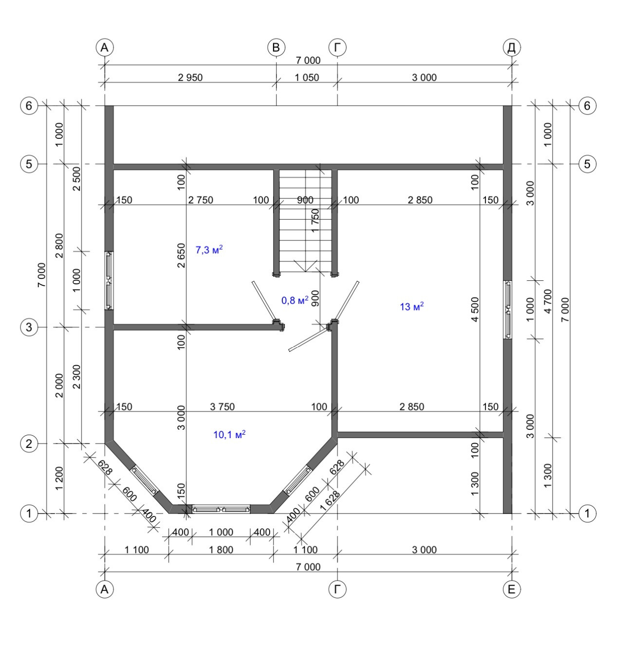 Отличная планировка для большой семьи: 4 спальни + кухня гостиная. Очень удобная лестница.