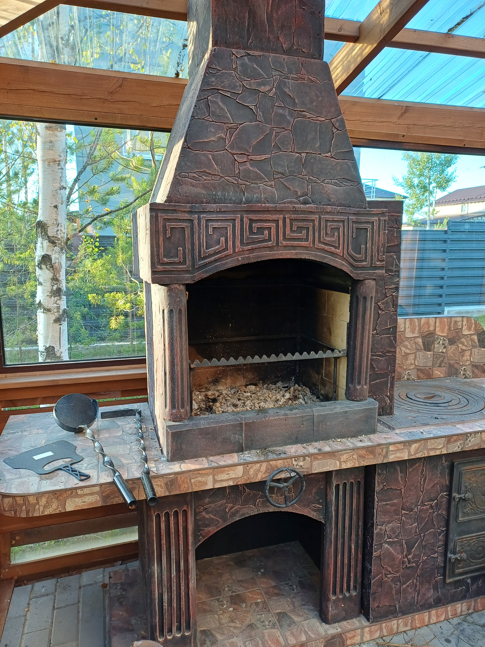 Также есть крытая терраса на первом этаже для барбекю.